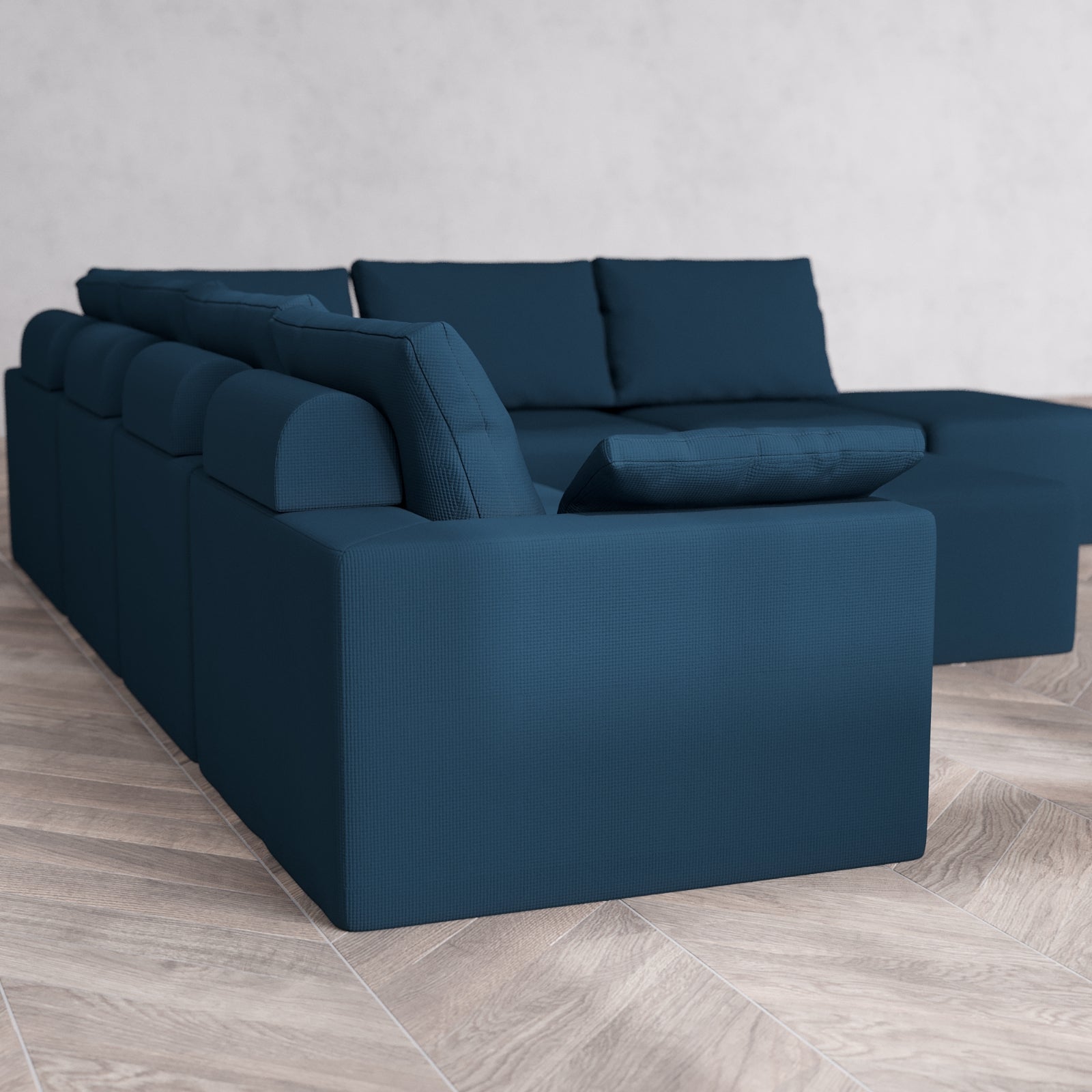Modular Washable 7-Seater Open End Corner Sectional + Chaise Ottoman Cloud + Bolster Sofa | Left-Facing Arm | Arden Weave in Lazuli