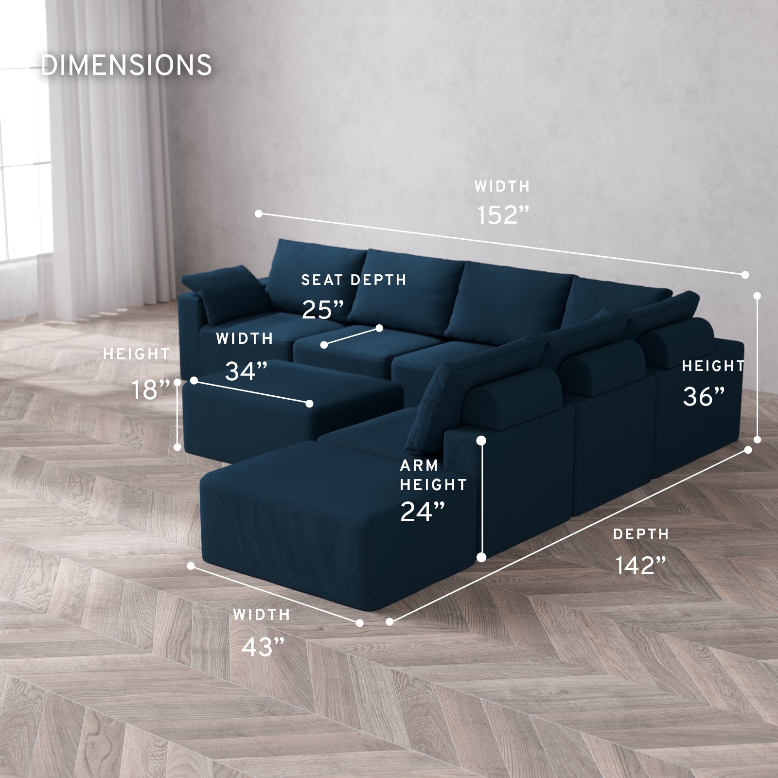 Please note, the natural characteristics of foam may compound the total dimensions by 1/2” to 1” per module.