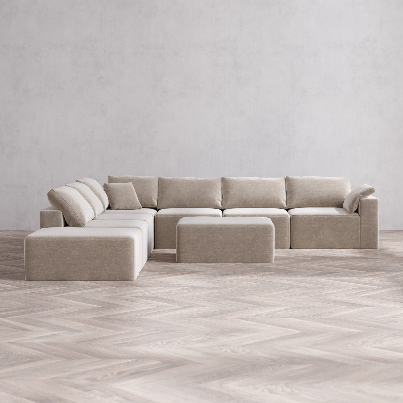 Designed with true flexibility in mind, our modular system adapts to your space and your lifestyle. Whether you're expanding, downsizing, or simply reimagining your layout, each piece connects effortlessly to create a configuration that works for you—today, and as life changes.
