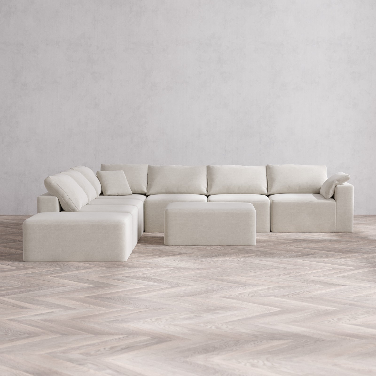Modular Washable 7-Seater Open End Corner Sectional + Chaise Ottoman Cloud Sofa | Right-Facing Arm | Satin Velvet in Cashew