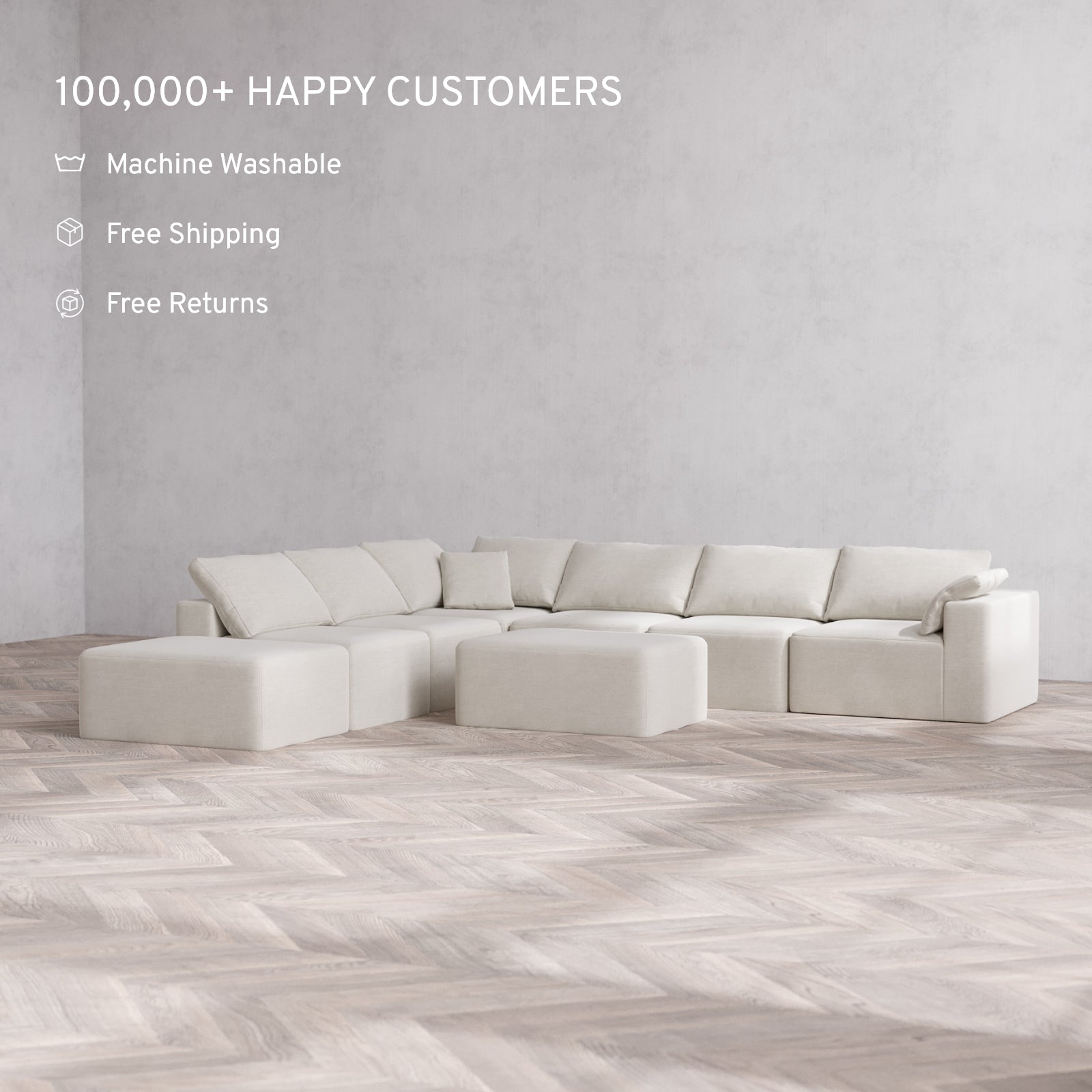 Machine Washable: Every piece of fabric—including the internal quilted duvet—is fully removable and machine washable. It’s the only Cloud-style sofa you can truly deep clean, effortlessly.