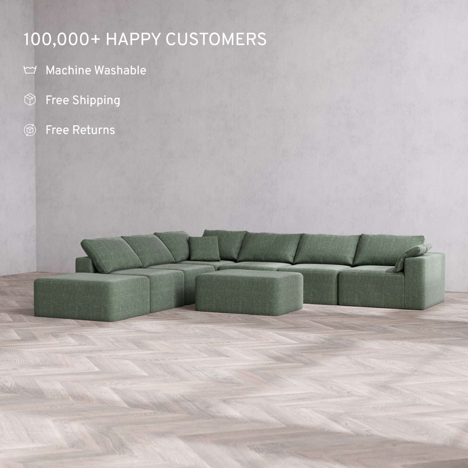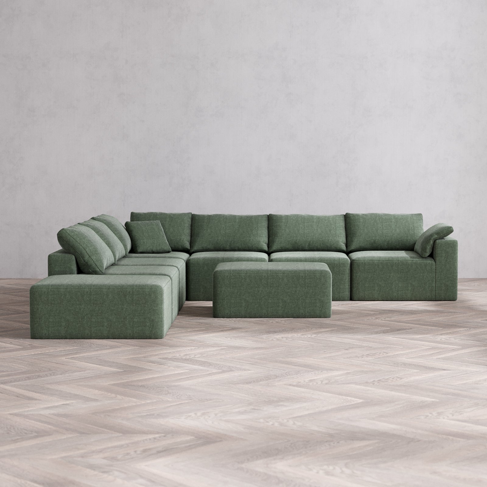 Modular Washable 7-Seater Open End Corner Sectional + Chaise Ottoman Cloud Sofa | Right-Facing Arm | Heirloom Velvet in Sage