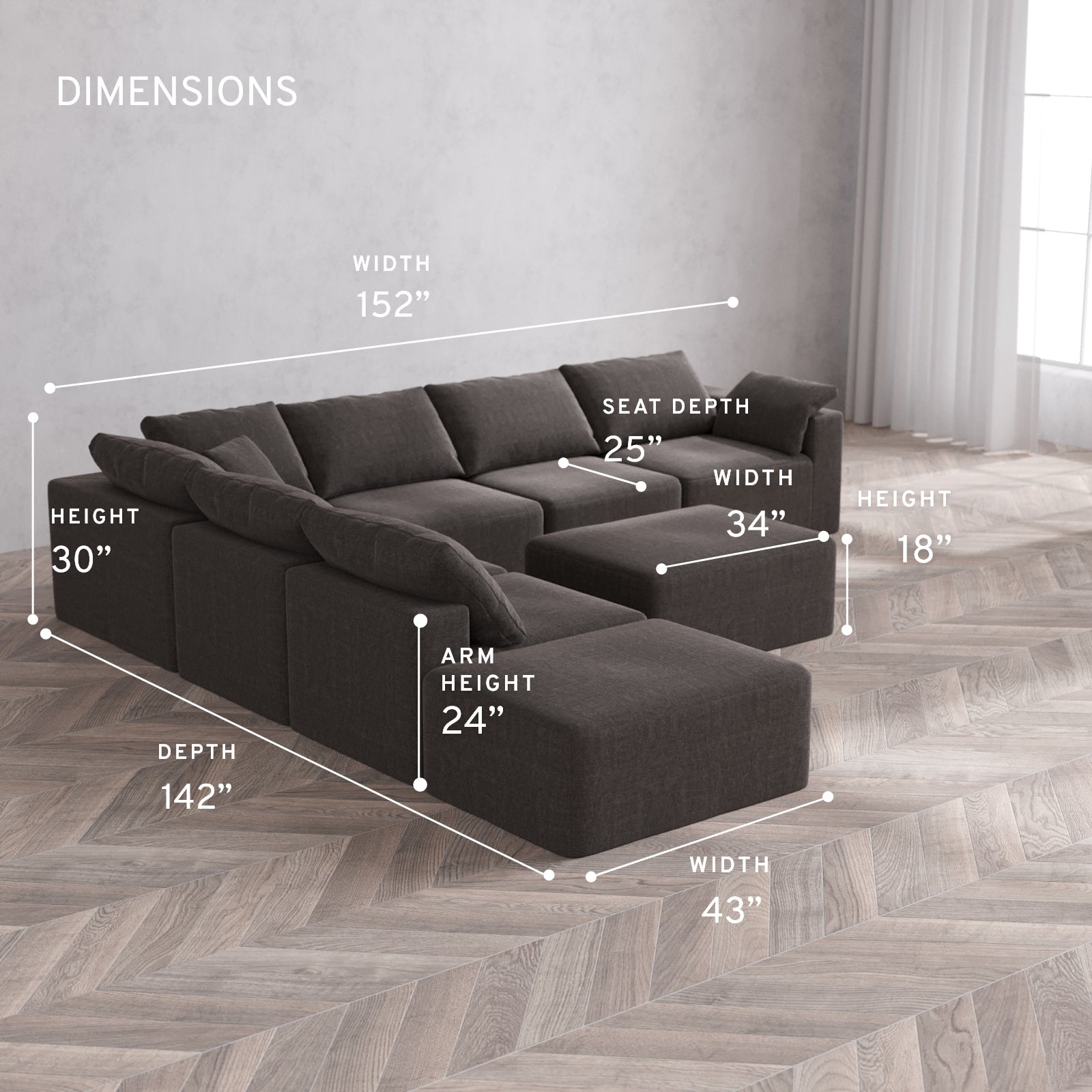 Modular Washable 7-Seater Open End Corner Sectional + Chaise Ottoman Cloud Sofa | Right-Facing Arm | Heirloom Velvet in Truffle