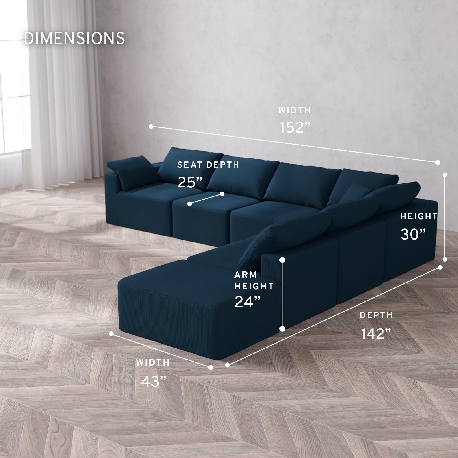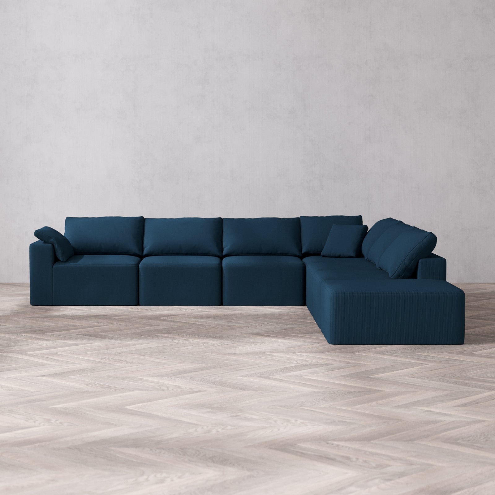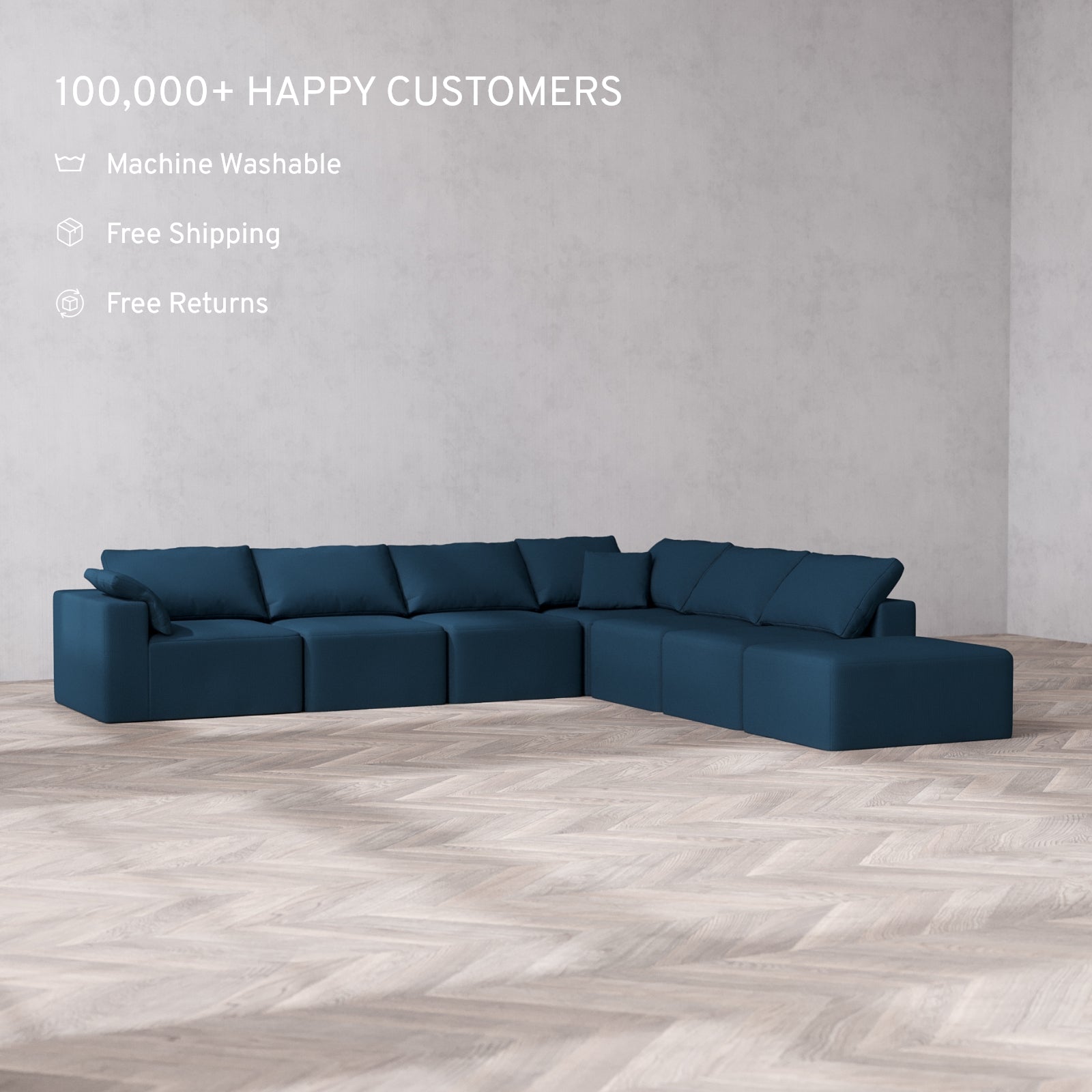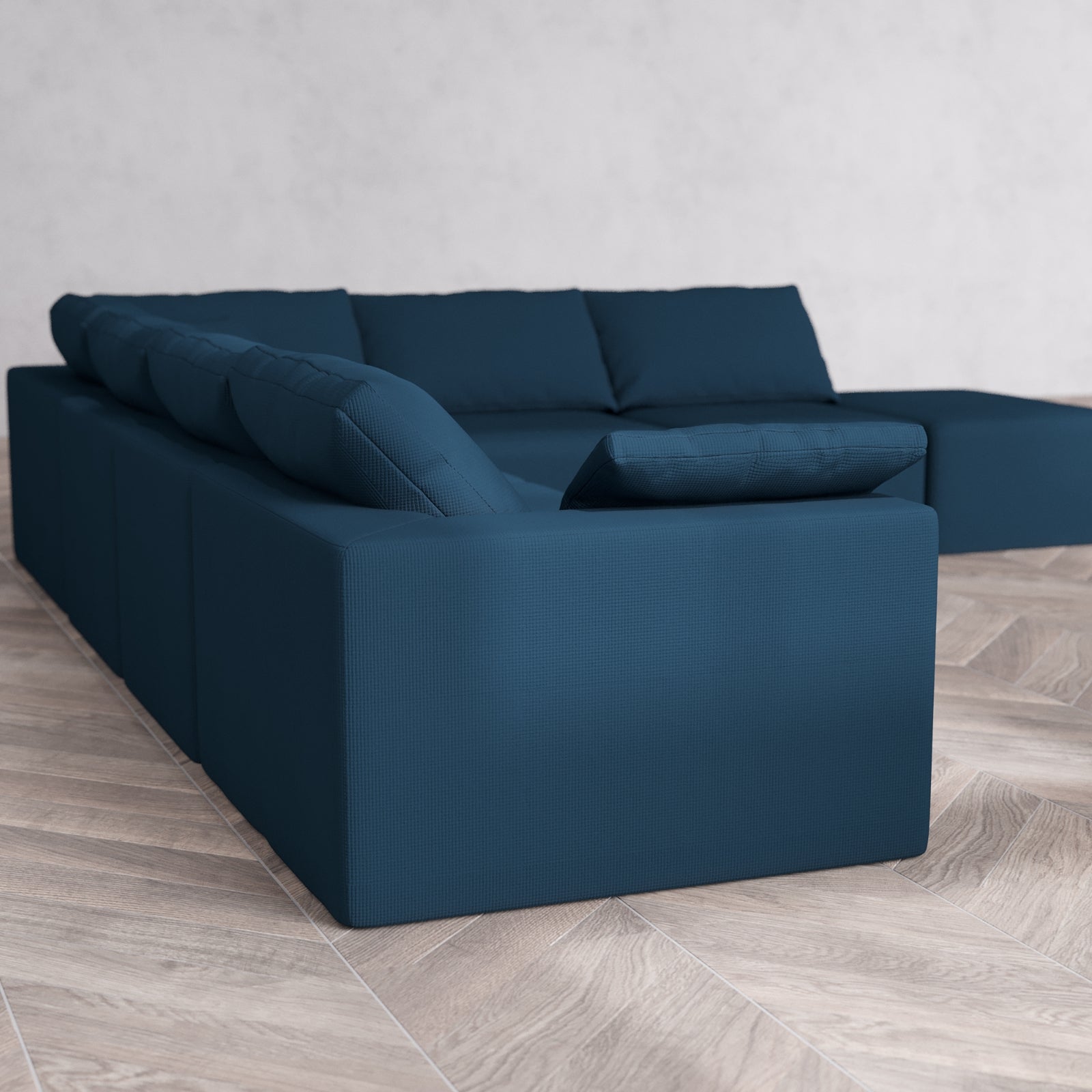 Modular Washable 7-Seater Open End Corner Sectional Cloud Sofa | Left-Facing Arm | Arden Weave in Lazuli