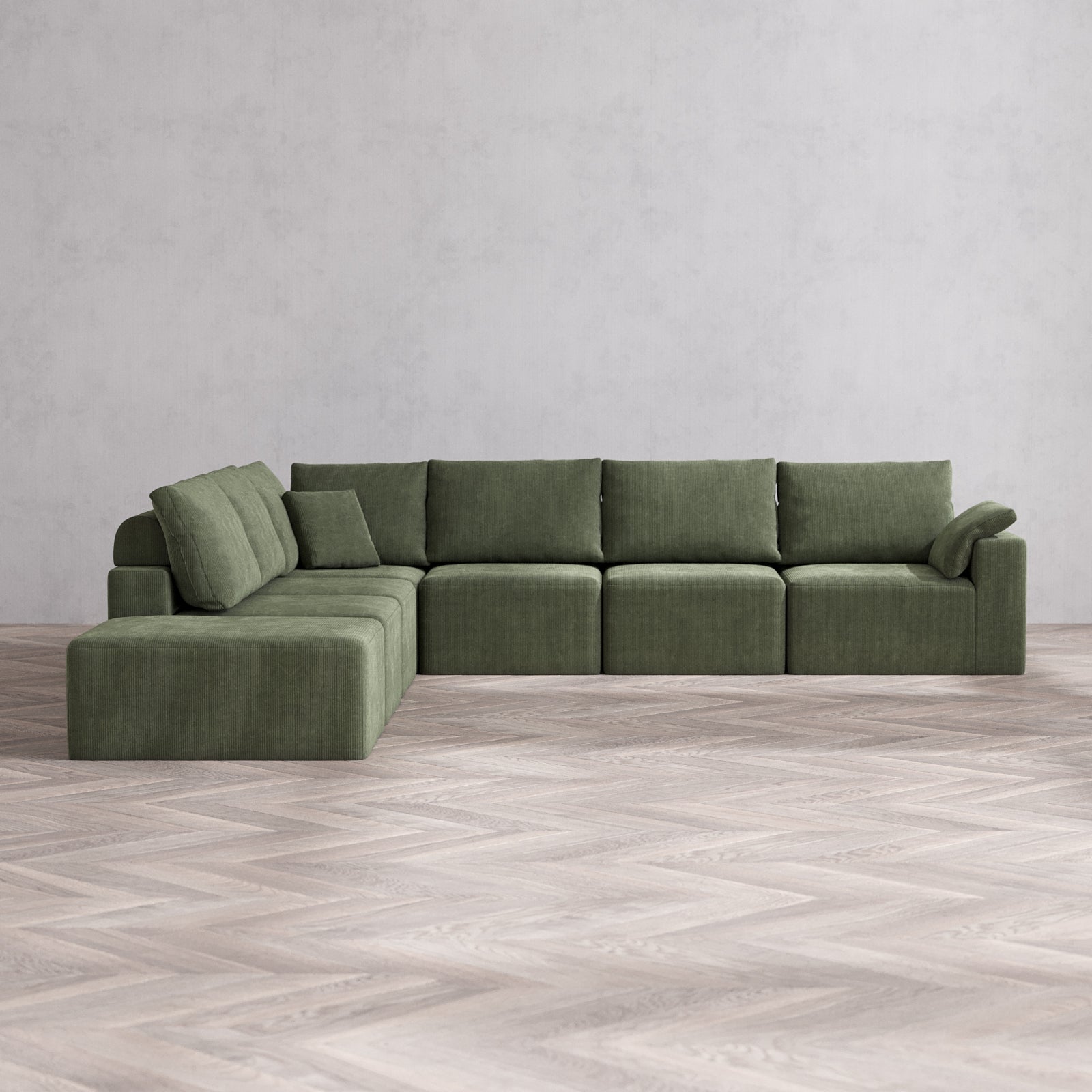 Modular Washable 7-Seater Open End Corner Sectional Cloud + Bolster Sofa | Right-Facing Arm | Luxe Corduroy in Juniper