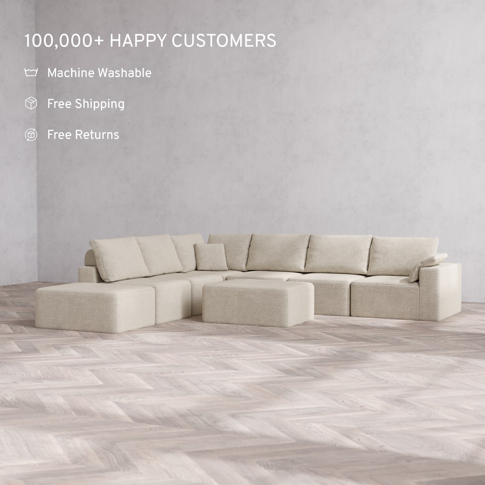 Modular: Flexible by design, each unit can be rearranged in seconds. Our patent-pending sofas are built to fit effortlessly into spaces of any size.