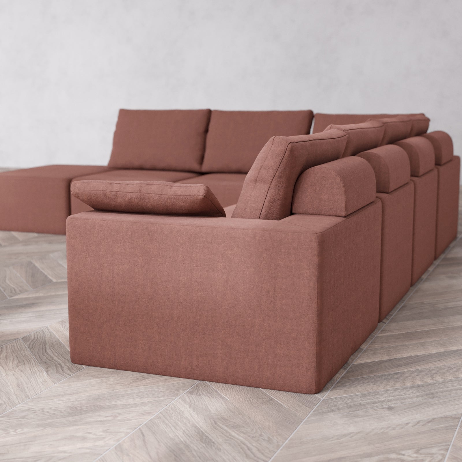 Modular Washable 7-Seater Open End Corner Sectional Cloud + Bolster Sofa | Right-Facing Arm | Heirloom Velvet in Sumac