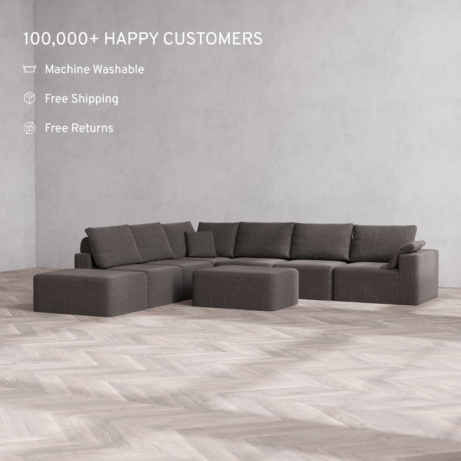 The Only Washable Cloud Sofa: With a waterproof frame and fabrics that resist pets, stains, and spills, this sofa is made to handle everyday messes. Our patent-pending covers are machine washable and fully interchangeable—buy extra sets to change up your look anytime.