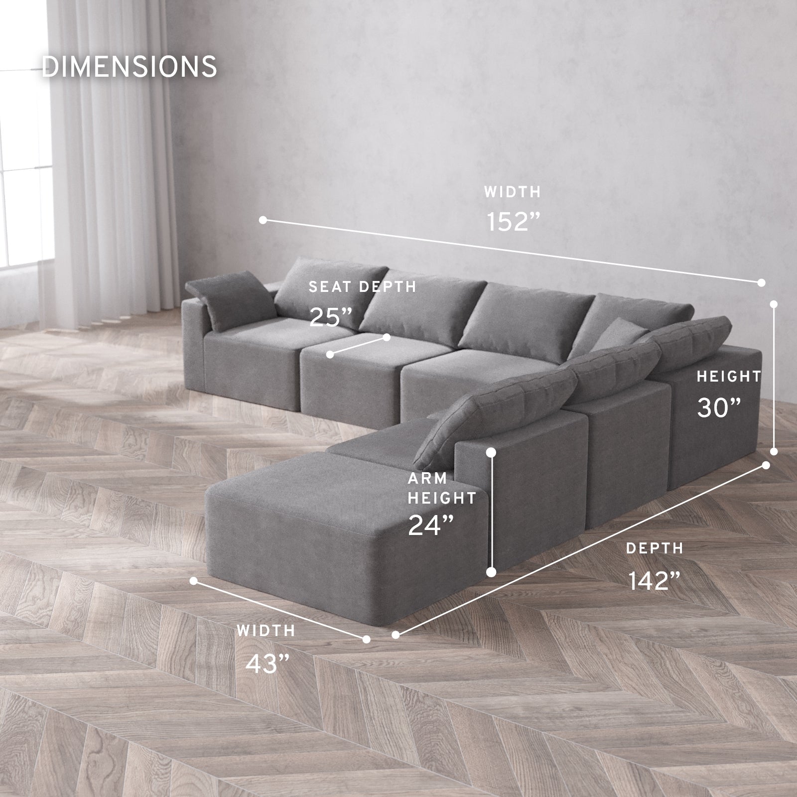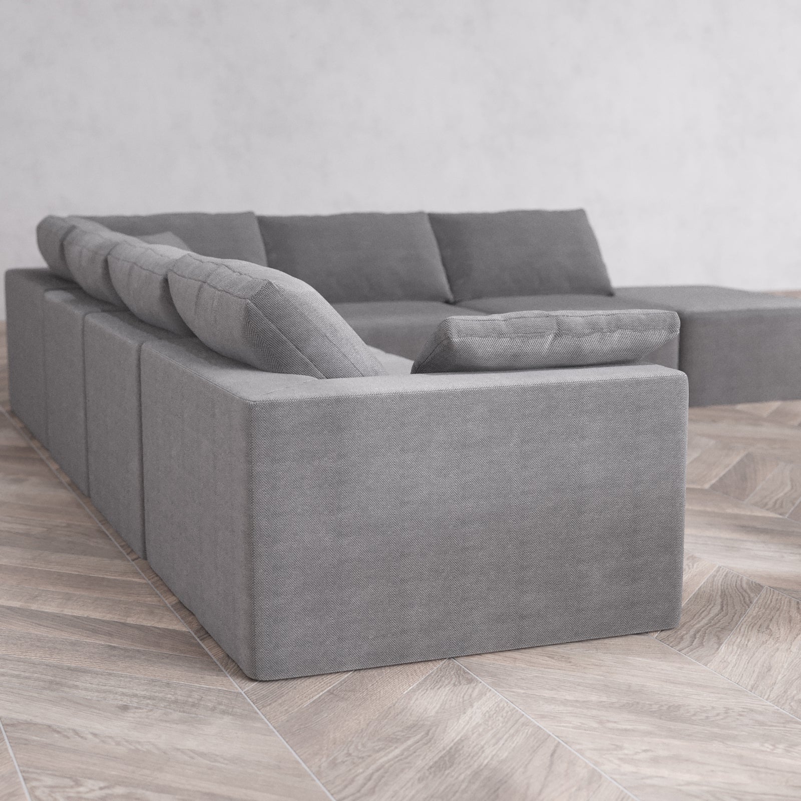 Modular Washable 7-Seater Open End Corner Sectional Cloud Sofa | Left-Facing Arm | Lux Weave in Slate