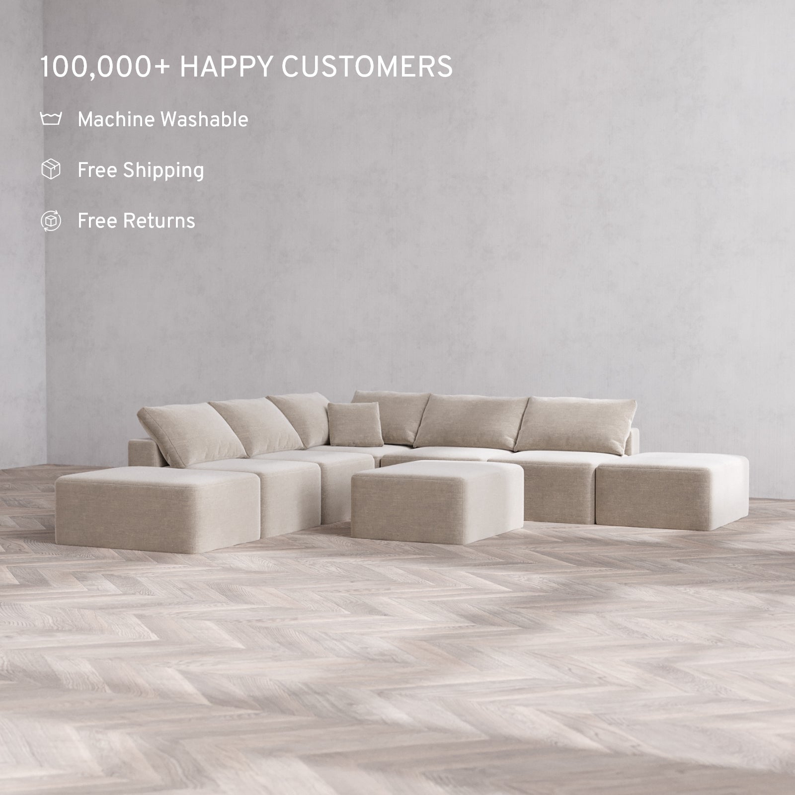 Machine Washable: Every piece of fabric—including the internal quilted duvet—is fully removable and machine washable. It’s the only Cloud-style sofa you can truly deep clean, effortlessly.