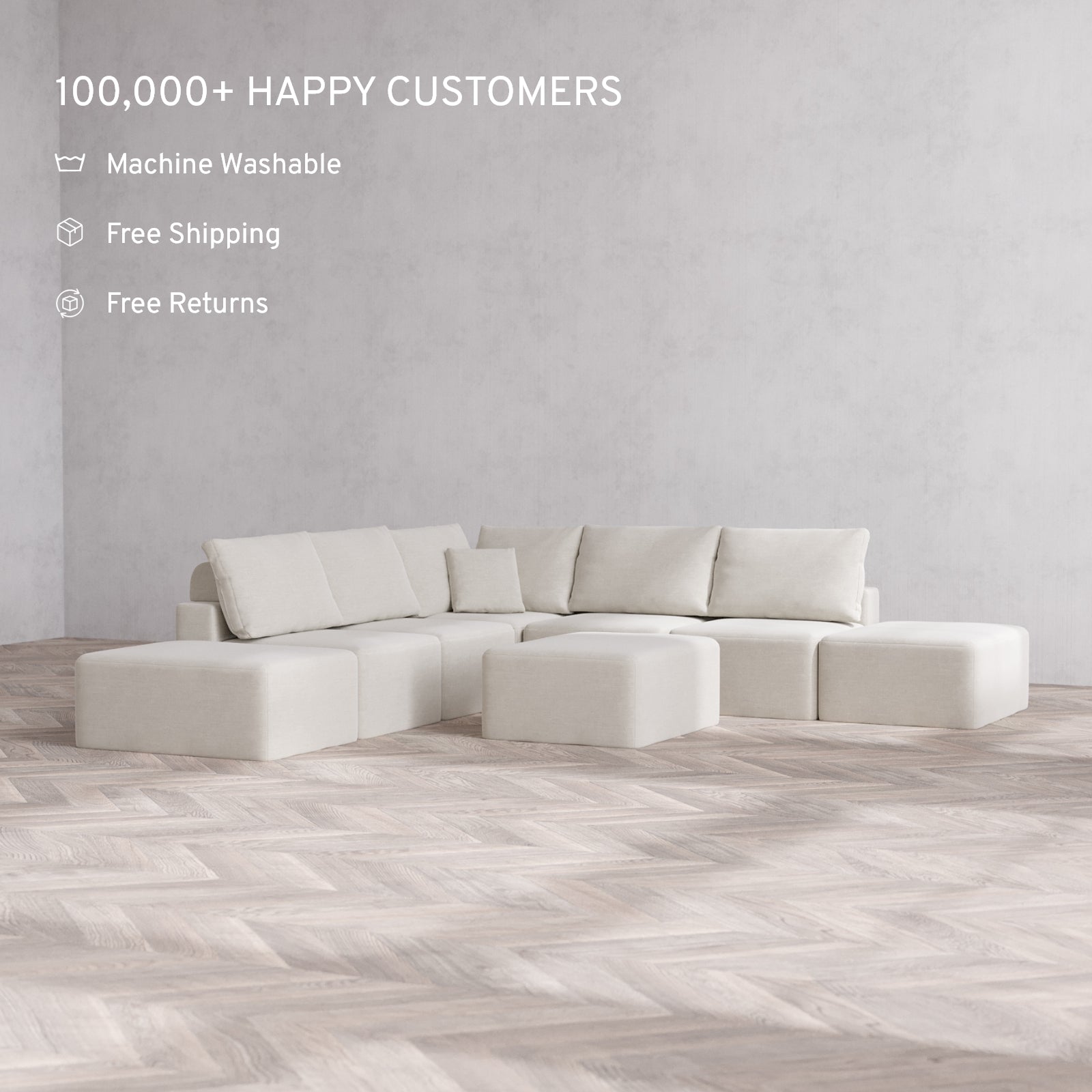 The Only Washable Cloud Sofa: With a waterproof frame and fabrics that resist pets, stains, and spills, this sofa is made to handle everyday messes. Our patent-pending covers are machine washable and fully interchangeable—buy extra sets to change up your look anytime.