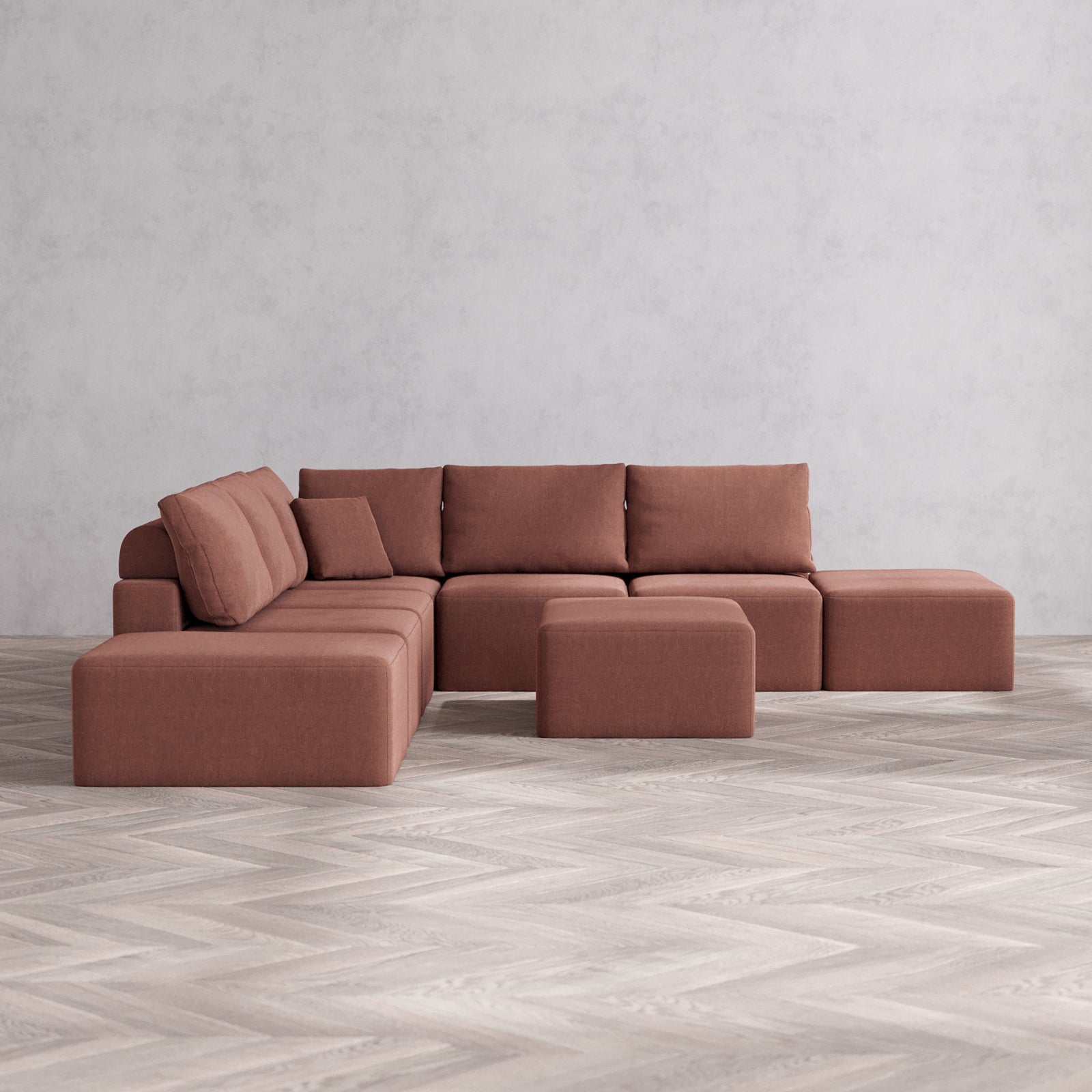 Designed with true flexibility in mind, our modular system adapts to your space and your lifestyle. Whether you're expanding, downsizing, or simply reimagining your layout, each piece connects effortlessly to create a configuration that works for you—today, and as life changes.
