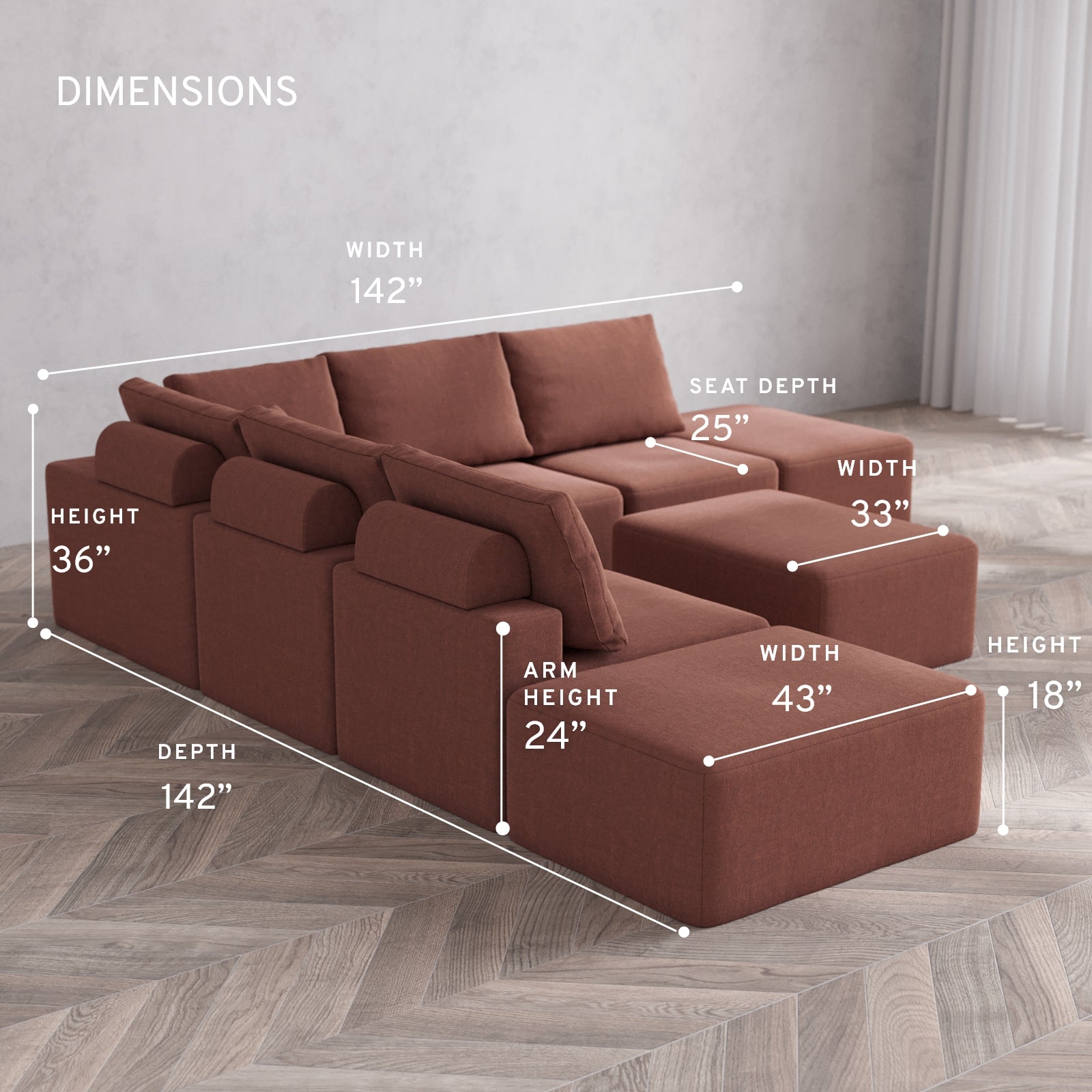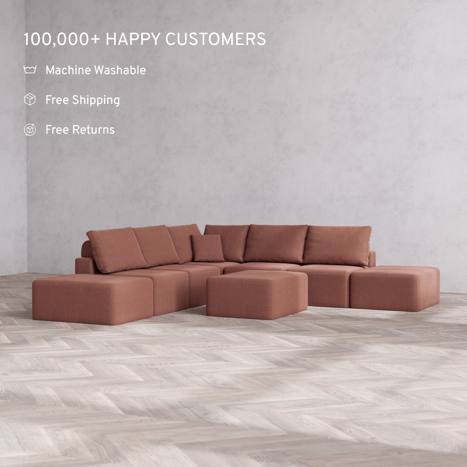 Modular: Flexible by design, each unit can be rearranged in seconds. Our patent-pending sofas are built to fit effortlessly into spaces of any size.