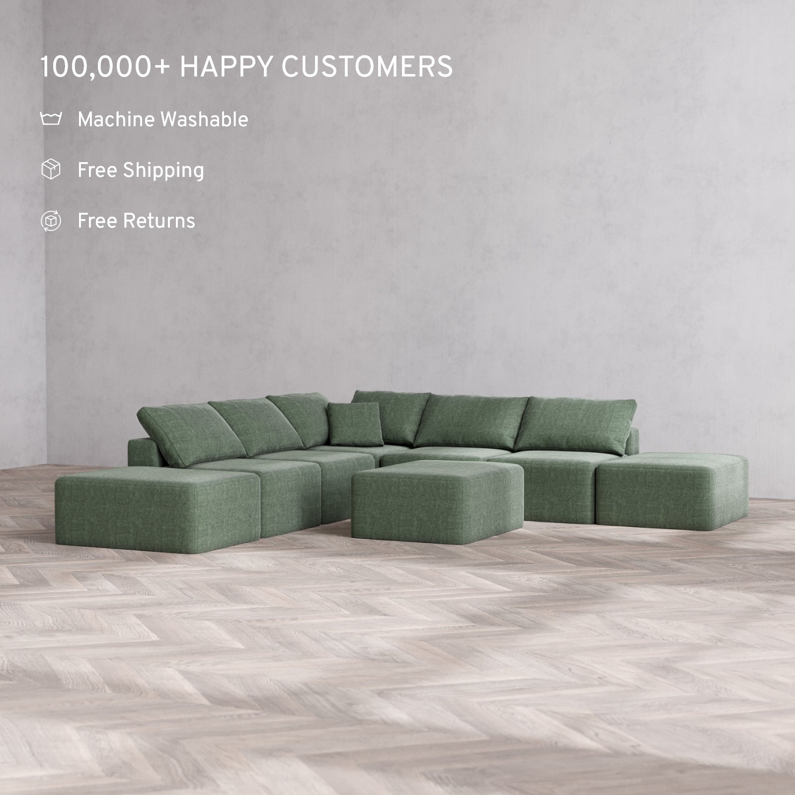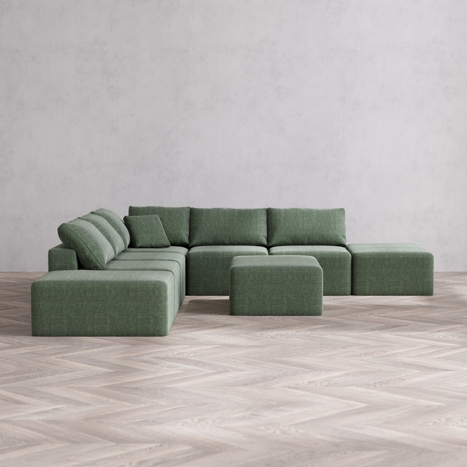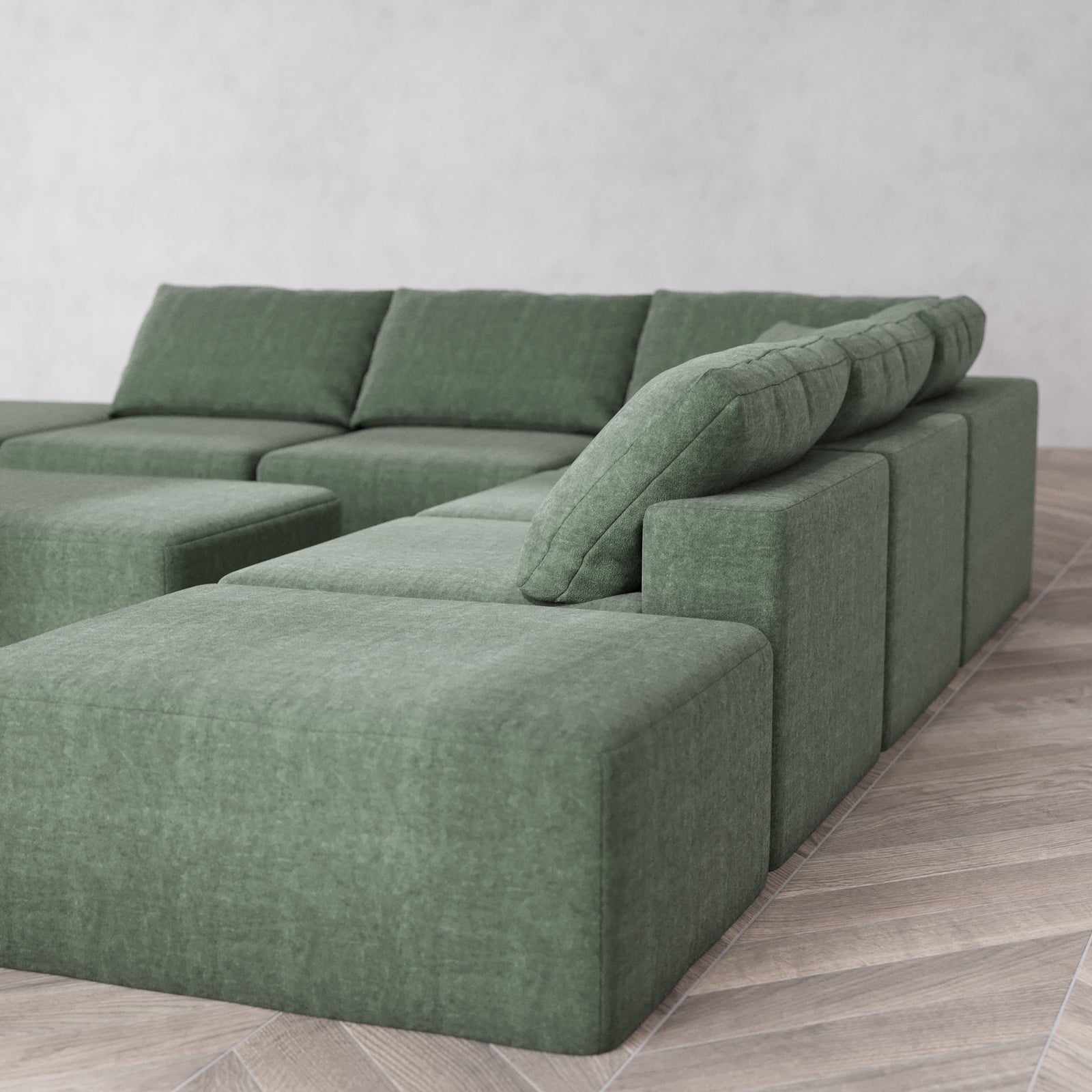 Modular Washable 7-Seater Open-Ends Corner Sectional + Chaise Ottoman Cloud Sofa | Heirloom Velvet in Sage