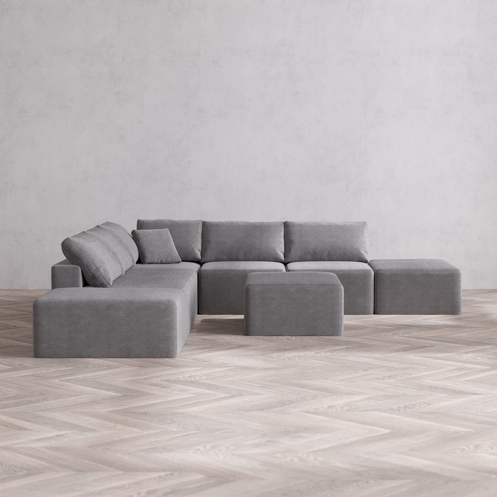 Designed with true flexibility in mind, our modular system adapts to your space and your lifestyle. Whether you're expanding, downsizing, or simply reimagining your layout, each piece connects effortlessly to create a configuration that works for you—today, and as life changes.
