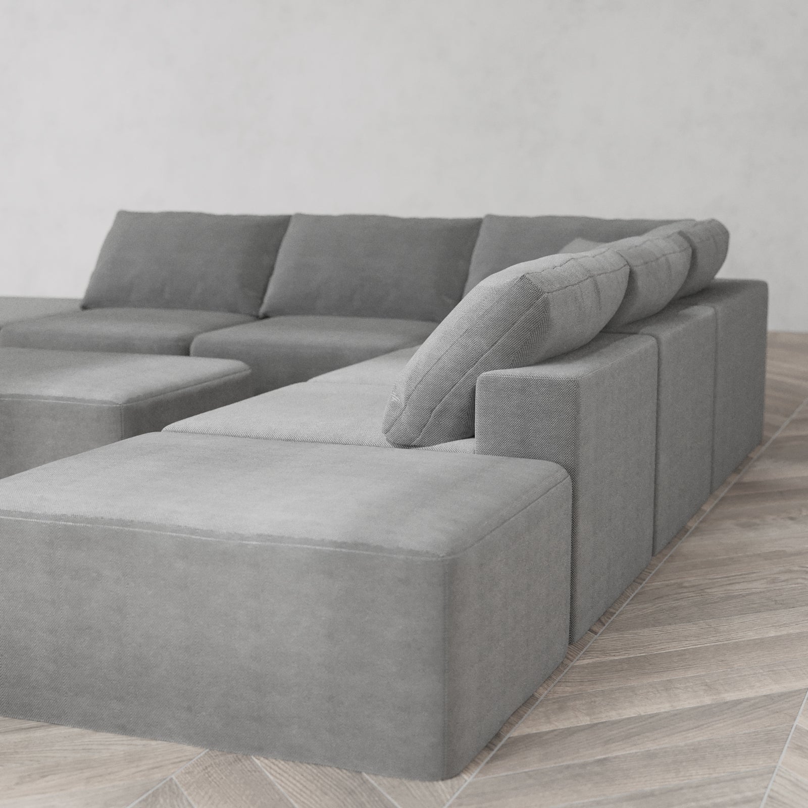 Modular Washable 7-Seater Open-Ends Corner Sectional + Chaise Ottoman Cloud Sofa | Lux Weave in Slate