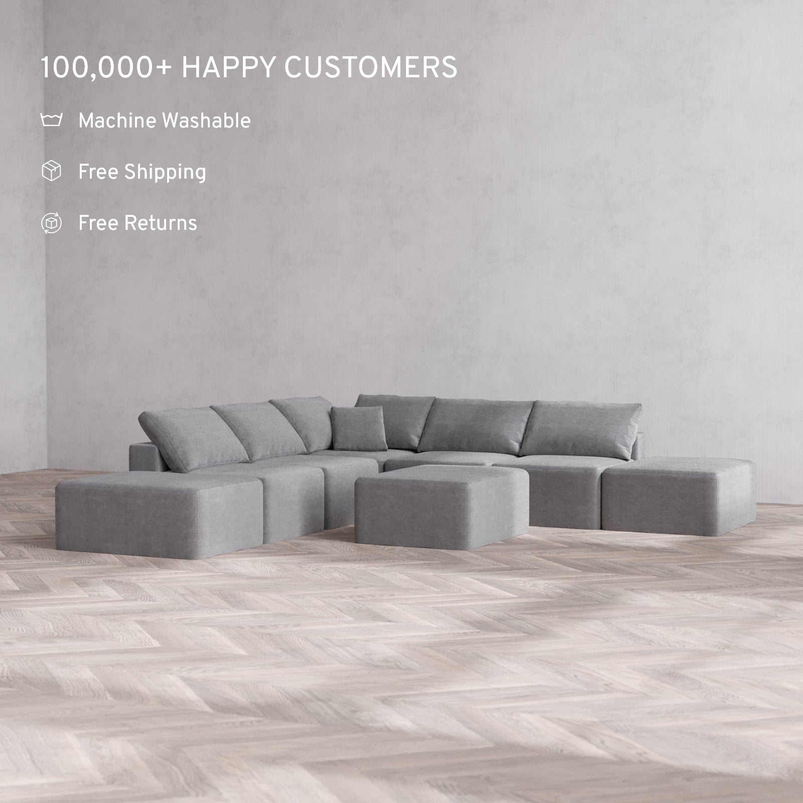Modular: Flexible by design, each unit can be rearranged in seconds. Our patent-pending sofas are built to fit effortlessly into spaces of any size.