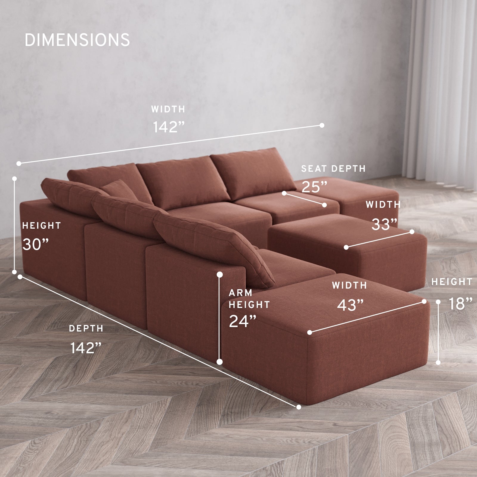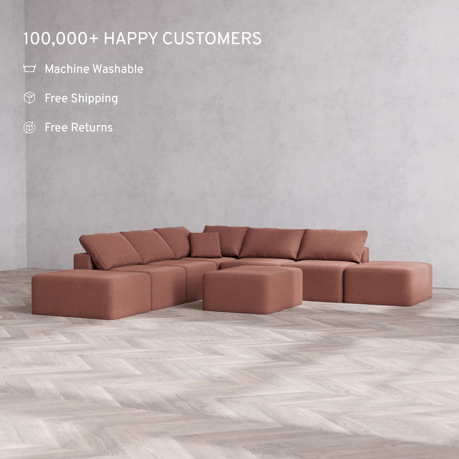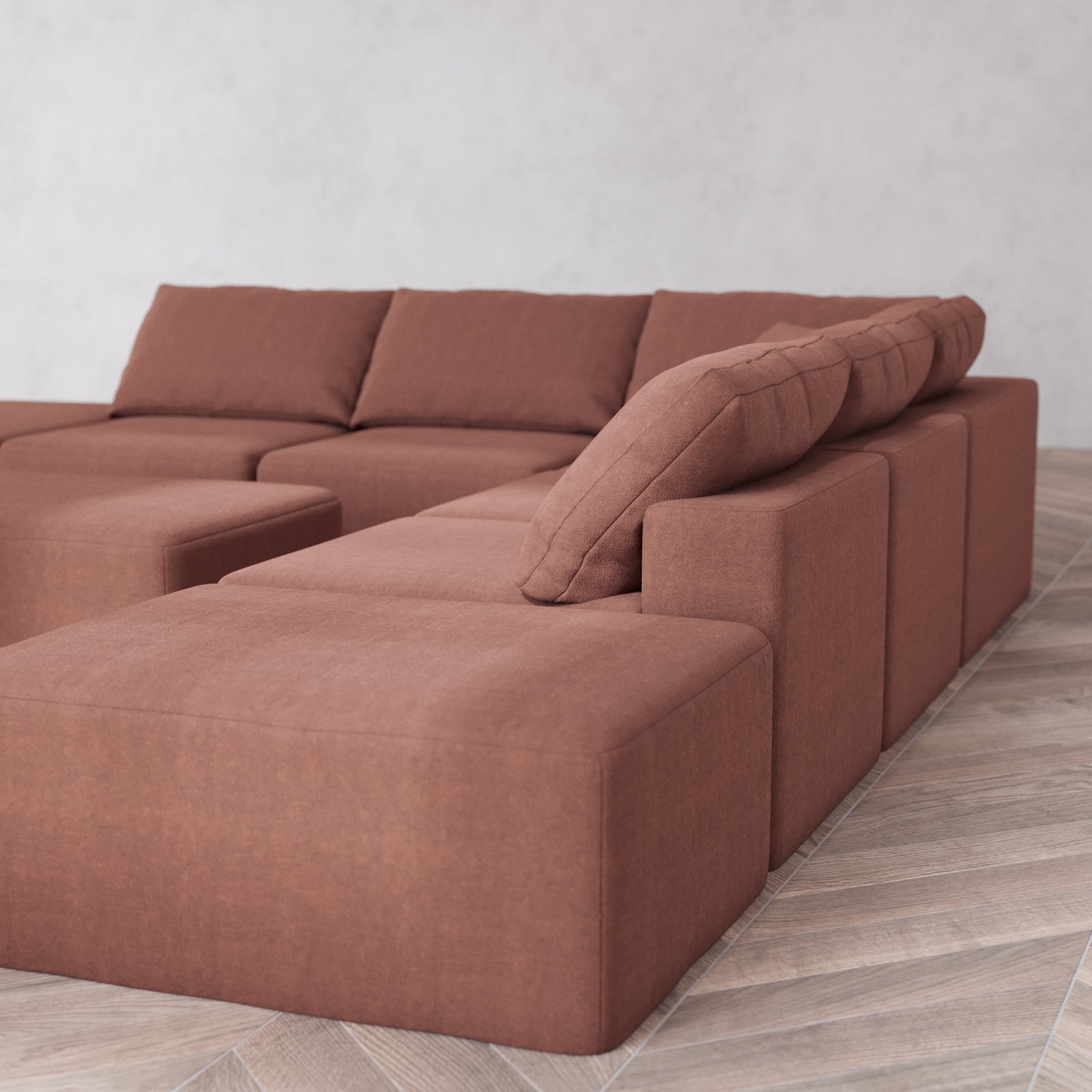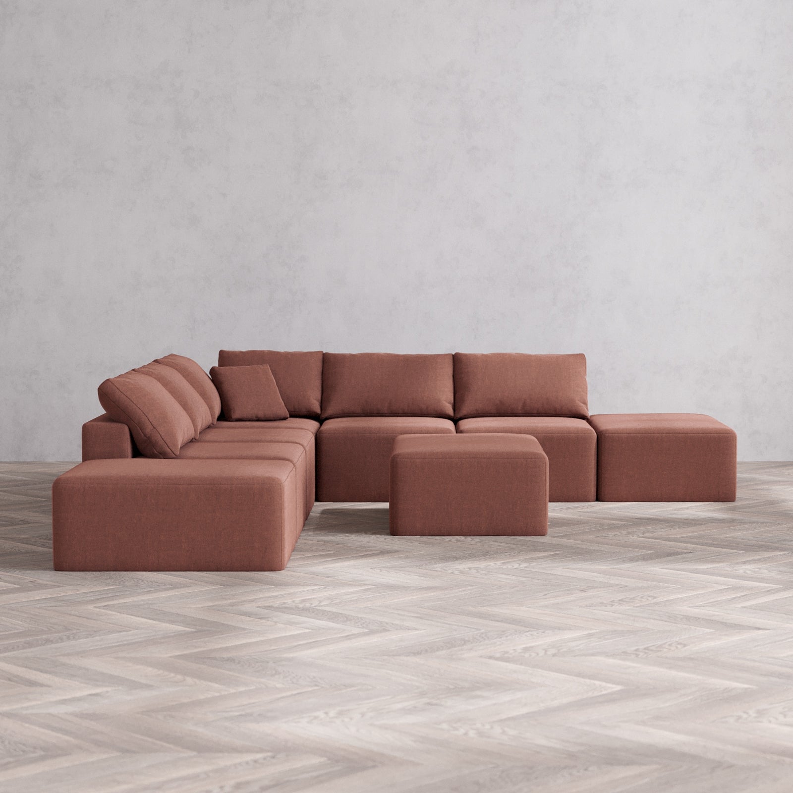 Modular Washable 7-Seater Open-Ends Corner Sectional + Chaise Ottoman Cloud Sofa | Heirloom Velvet in Sumac