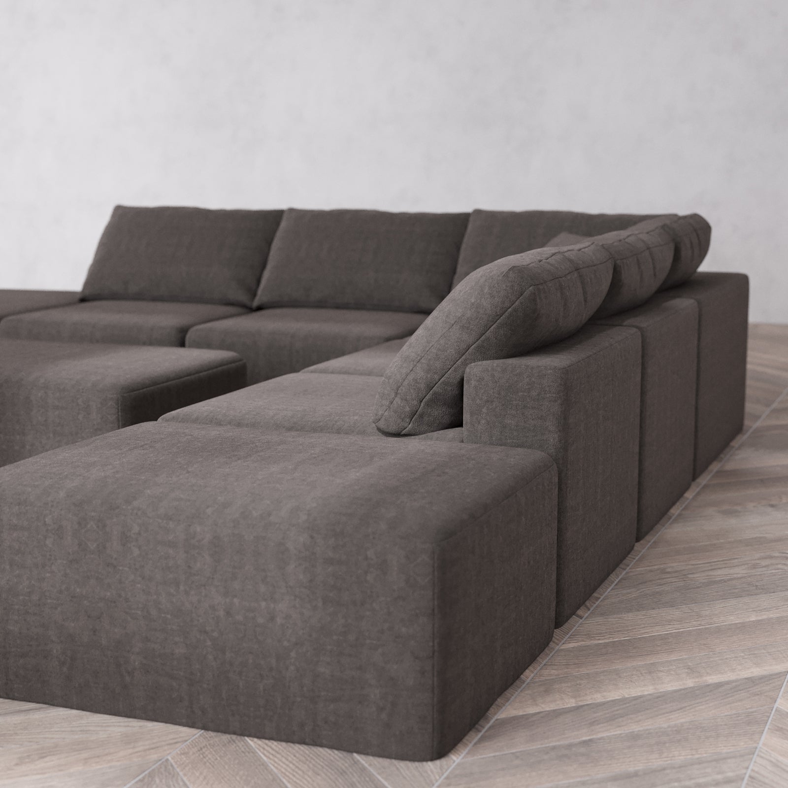 Modular Washable 7-Seater Open-Ends Corner Sectional + Chaise Ottoman Cloud Sofa | Heirloom Velvet in Truffle