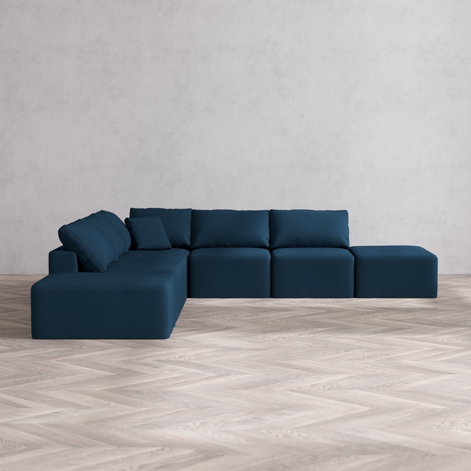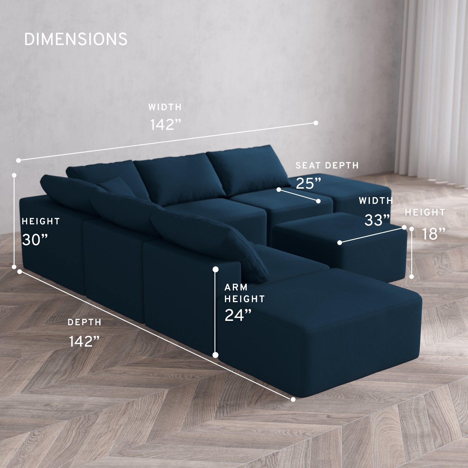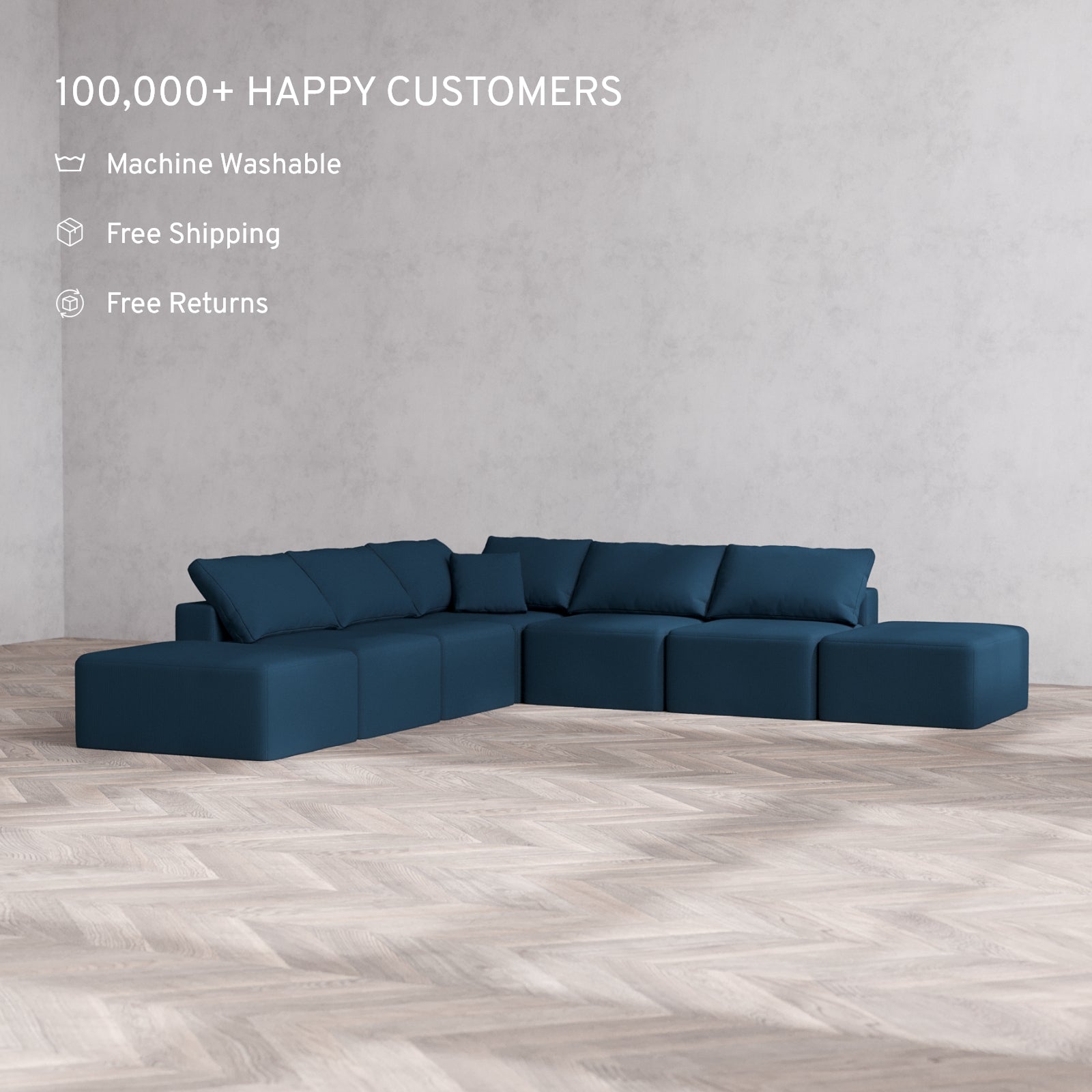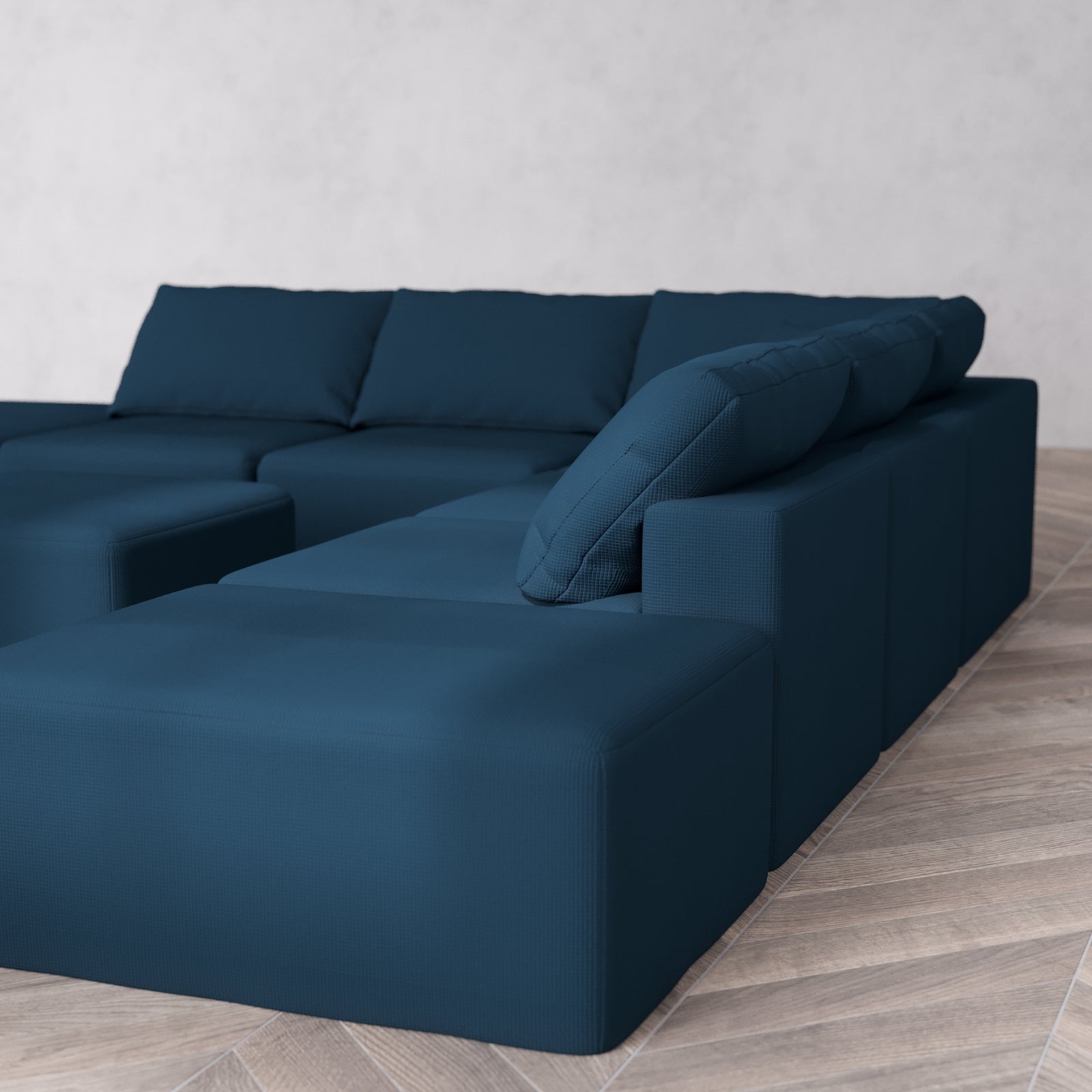 Modular Washable 7-Seater Open-Ends Corner Sectional Cloud Sofa | Arden Weave in Lazuli