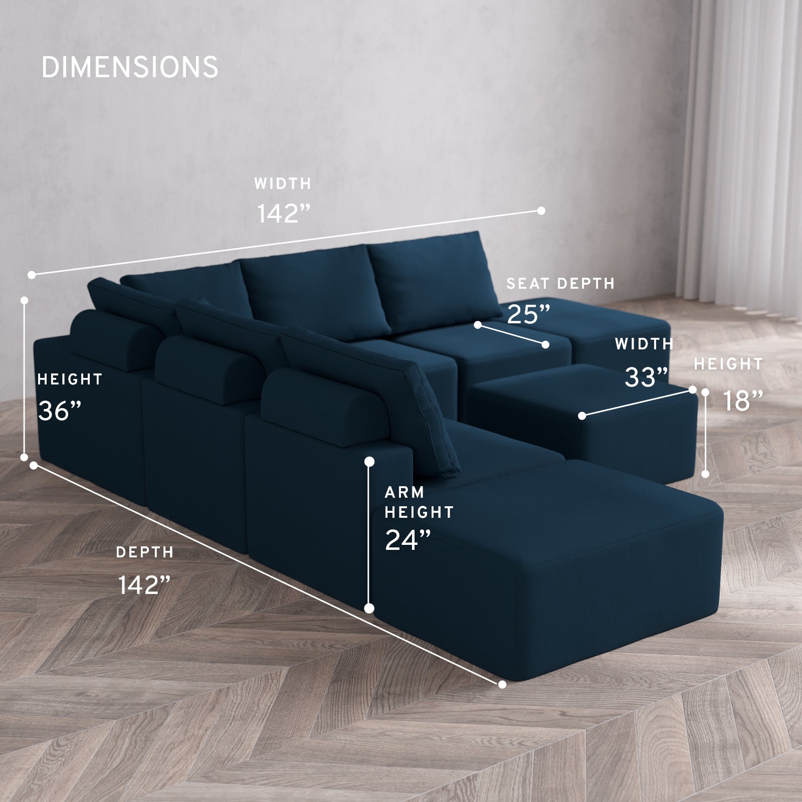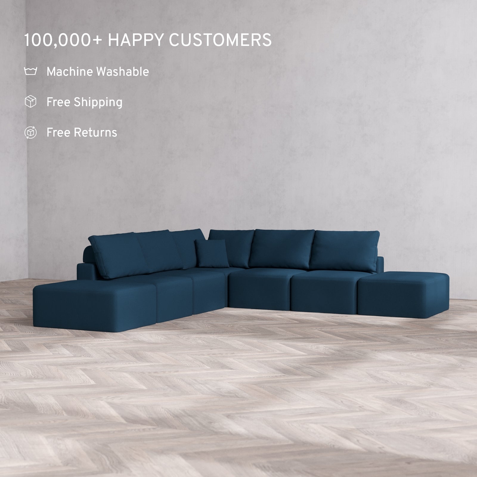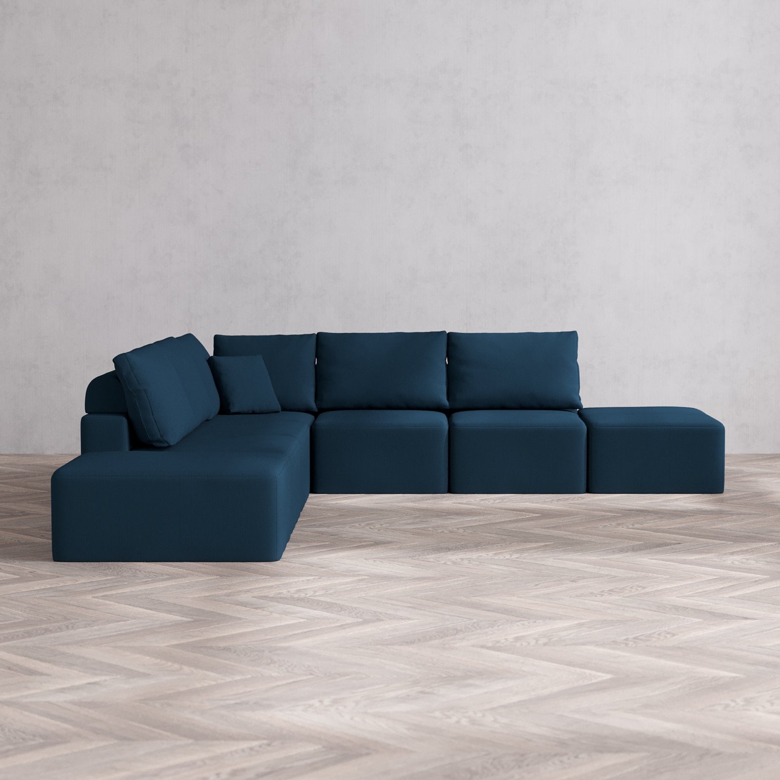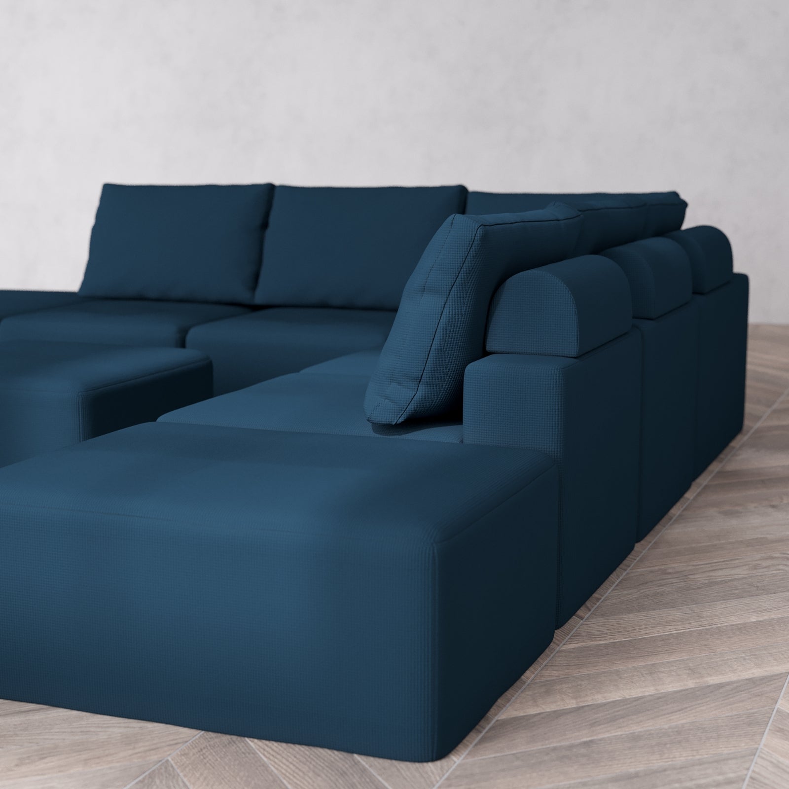 Modular Washable 7-Seater Open-Ends Corner Sectional Cloud + Bolster Sofa | Arden Weave in Lazuli