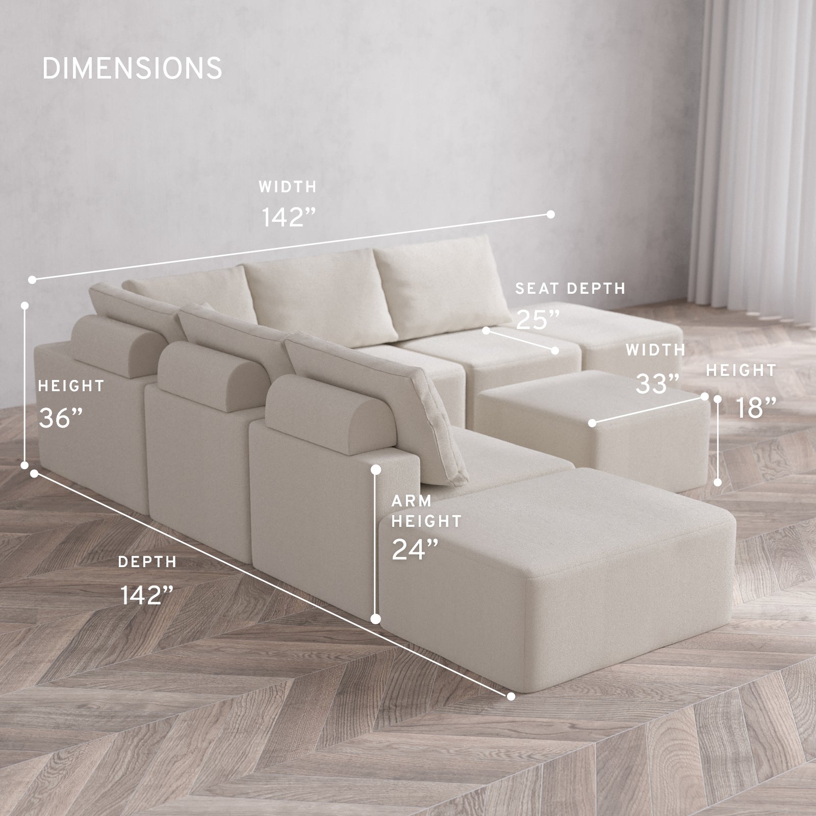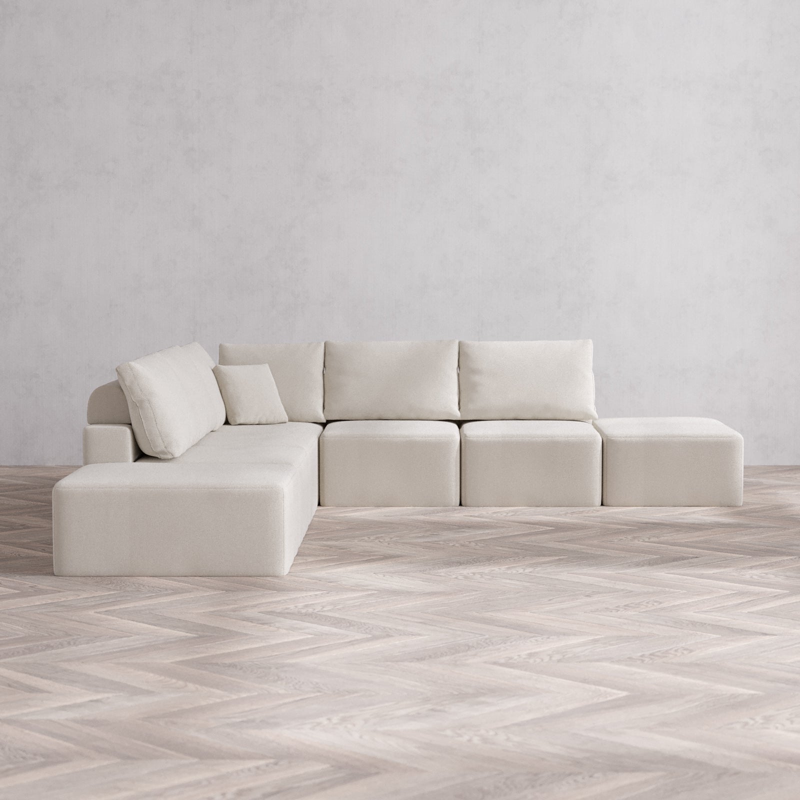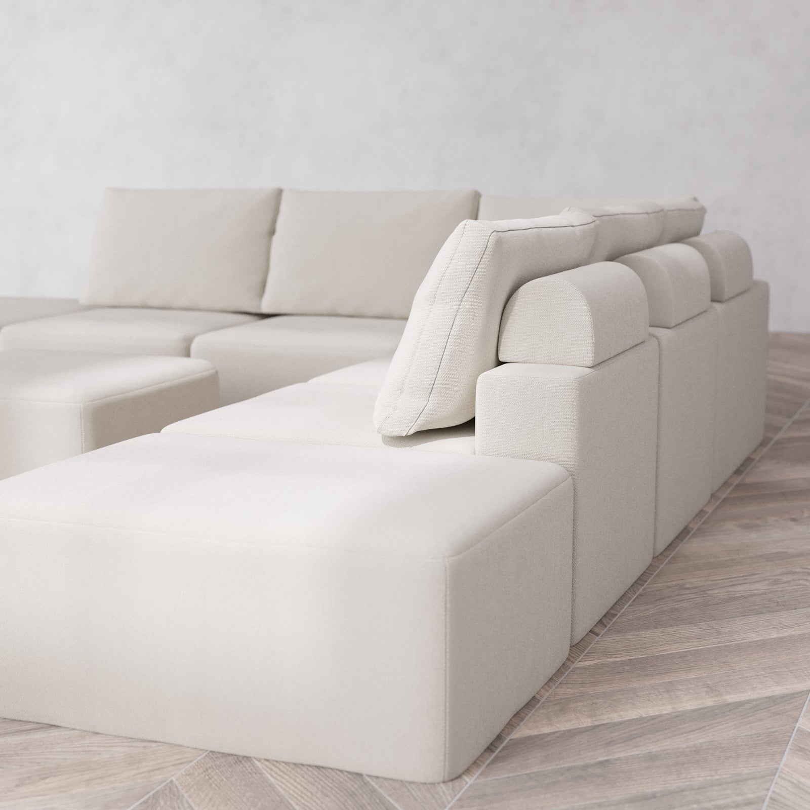 Modular Washable 7-Seater Open-Ends Corner Sectional Cloud + Bolster Sofa | Lux Weave in Pearl