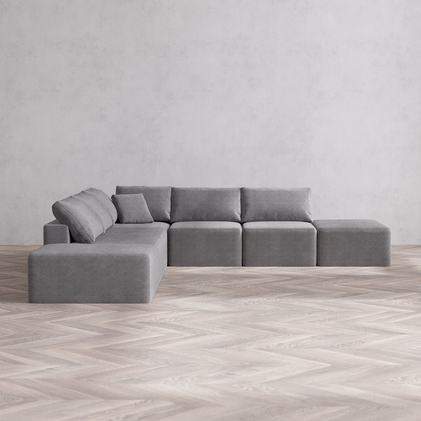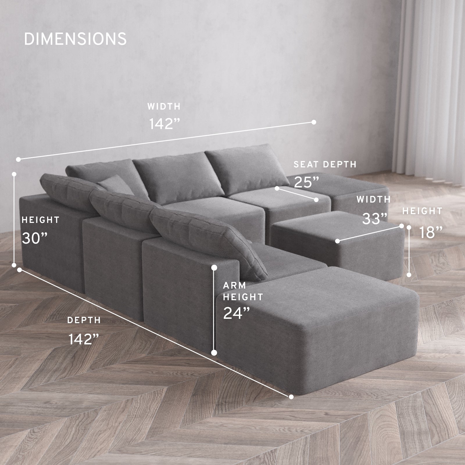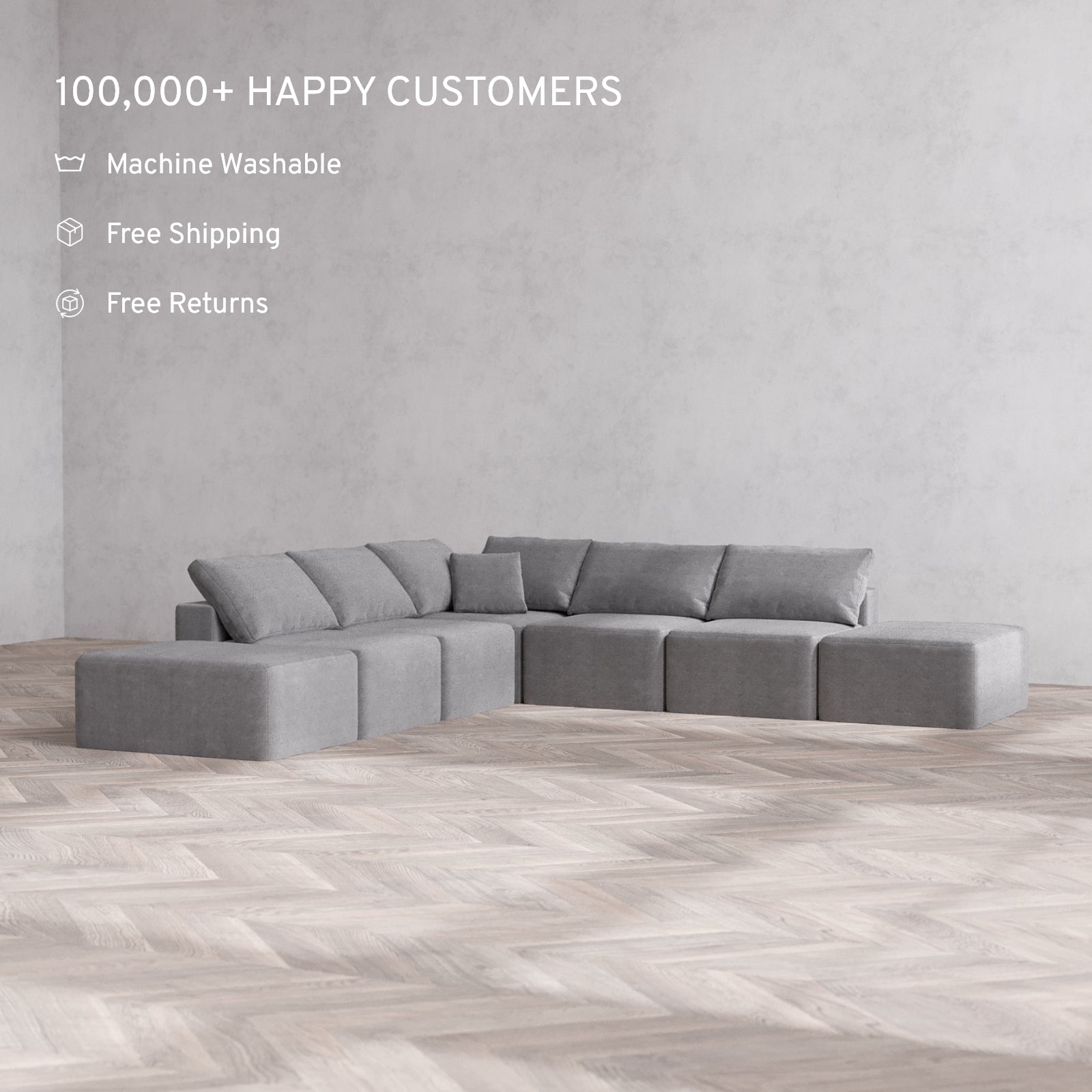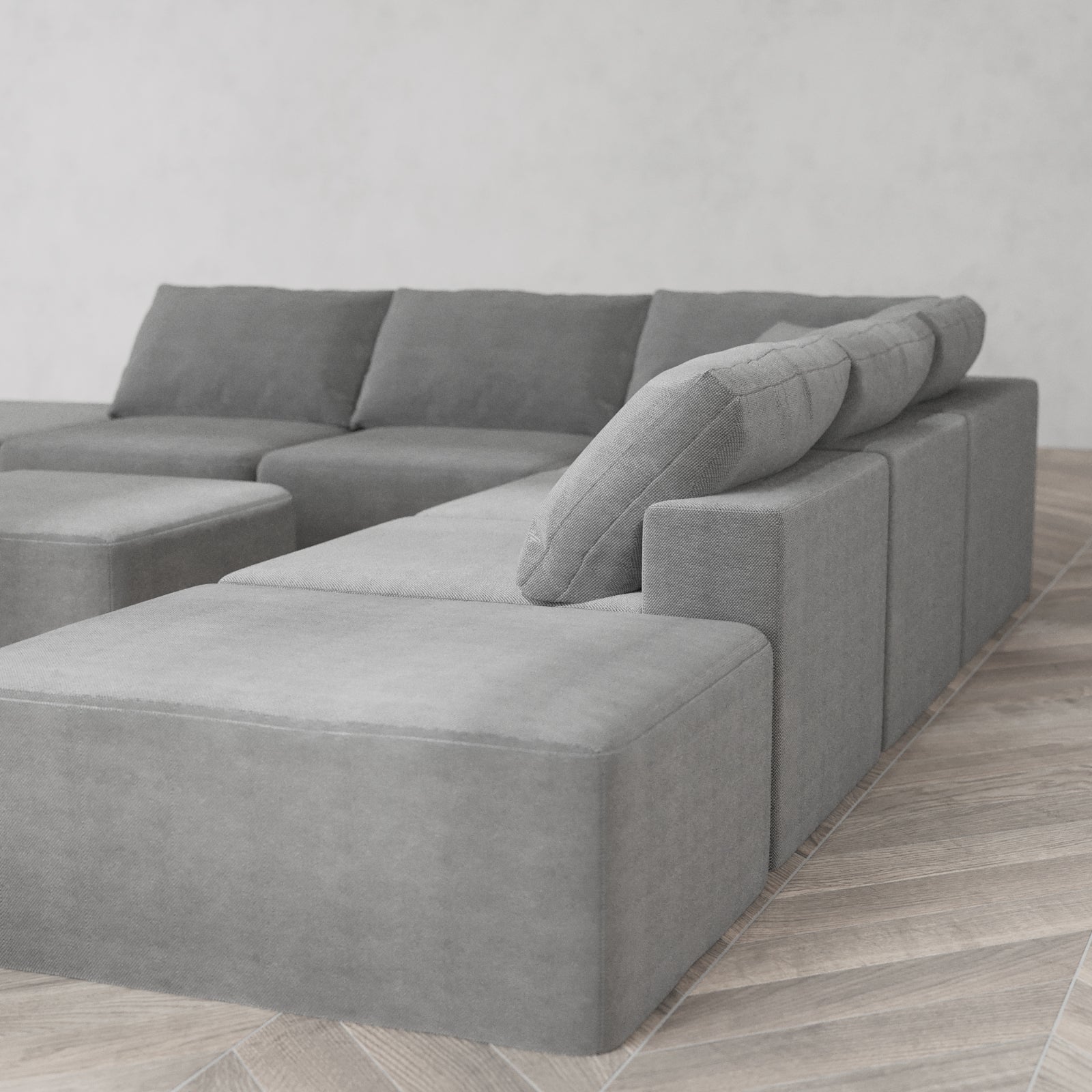 Modular Washable 7-Seater Open-Ends Corner Sectional Cloud Sofa | Lux Weave in Slate