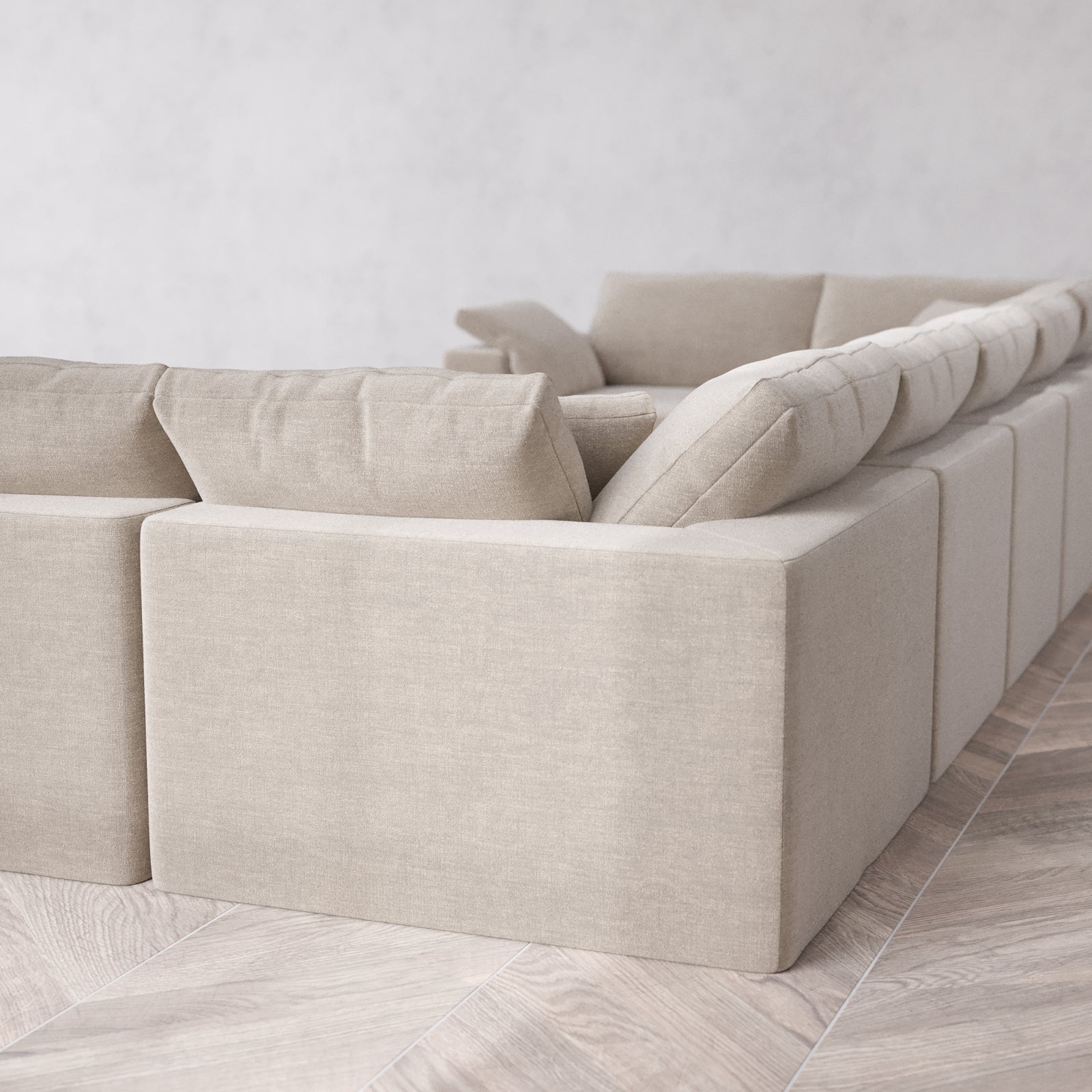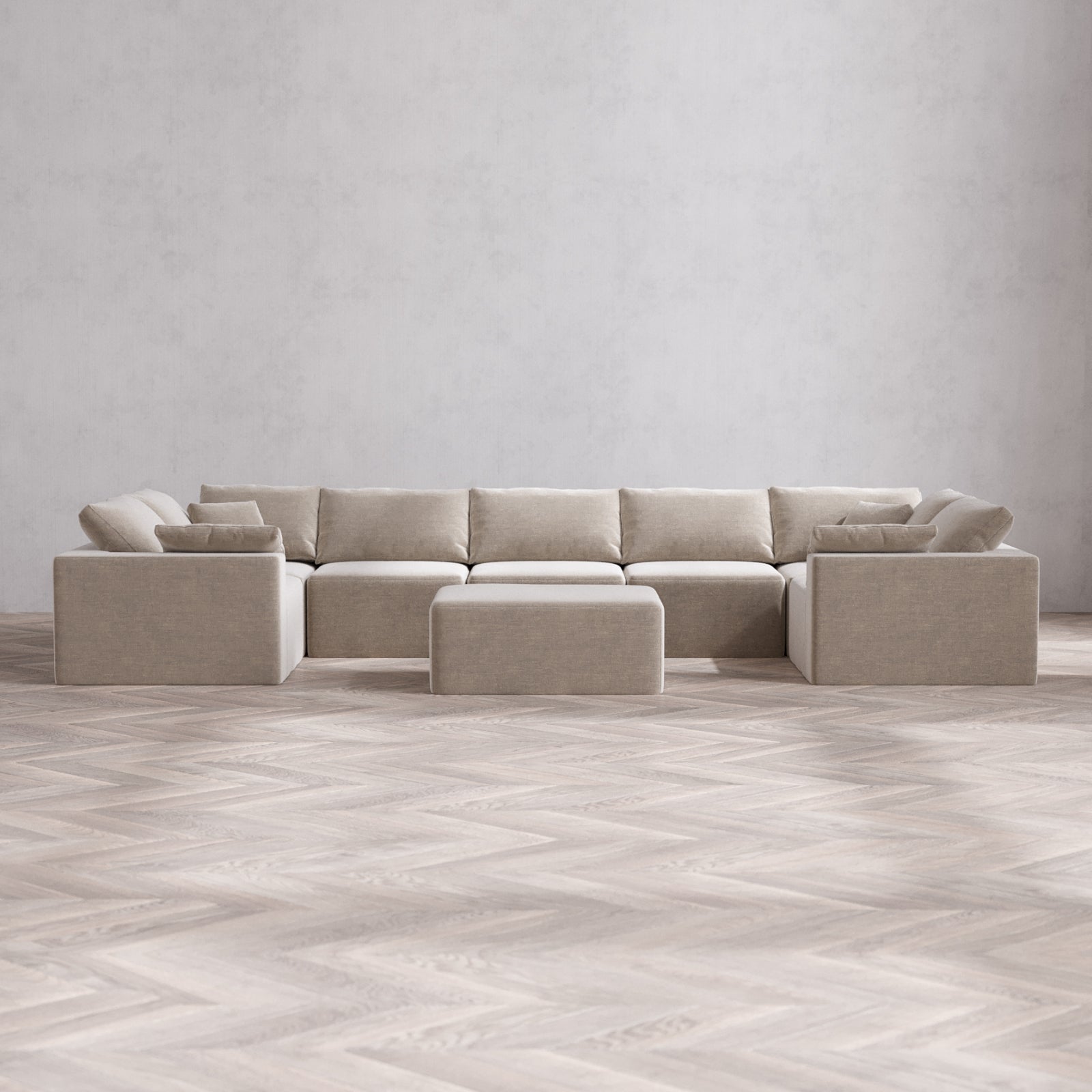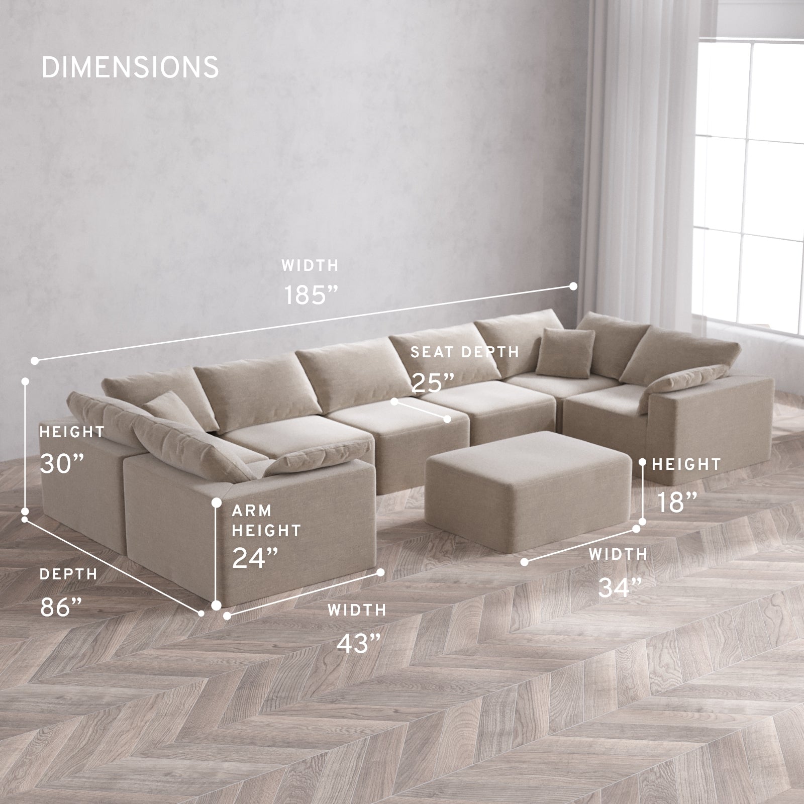 Modular Washable 7-Seater U Sectional + Chaise Ottoman Cloud Sofa | Satin Velvet in Caraway