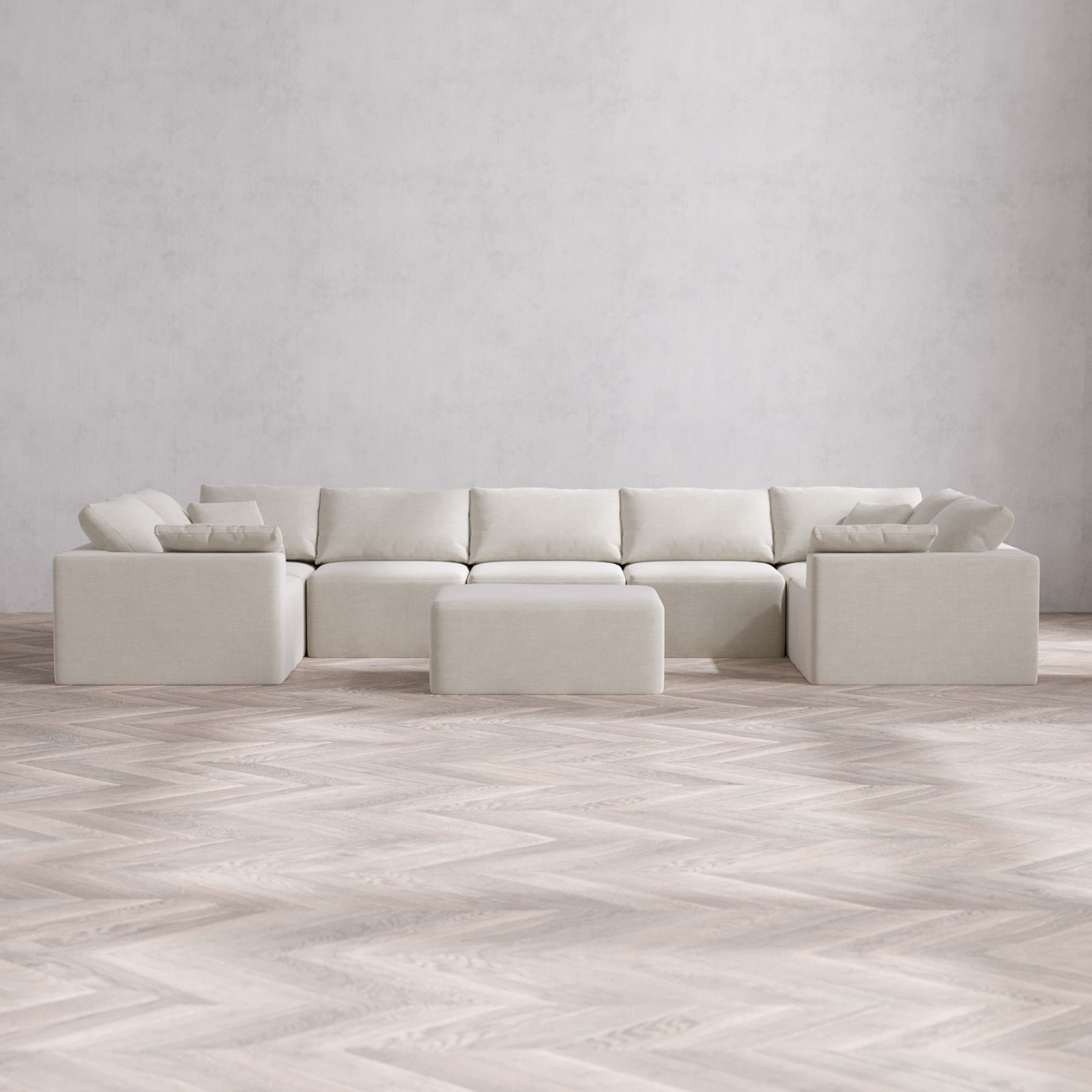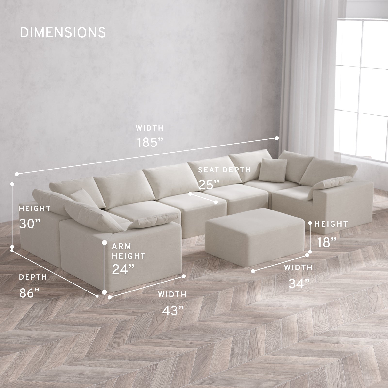 Modular Washable 7-Seater U Sectional + Chaise Ottoman Cloud Sofa | Satin Velvet in Cashew