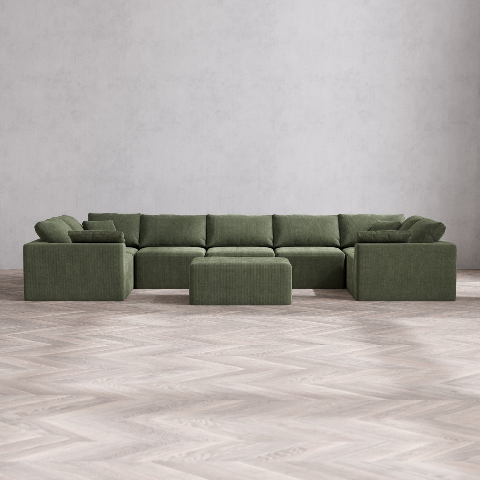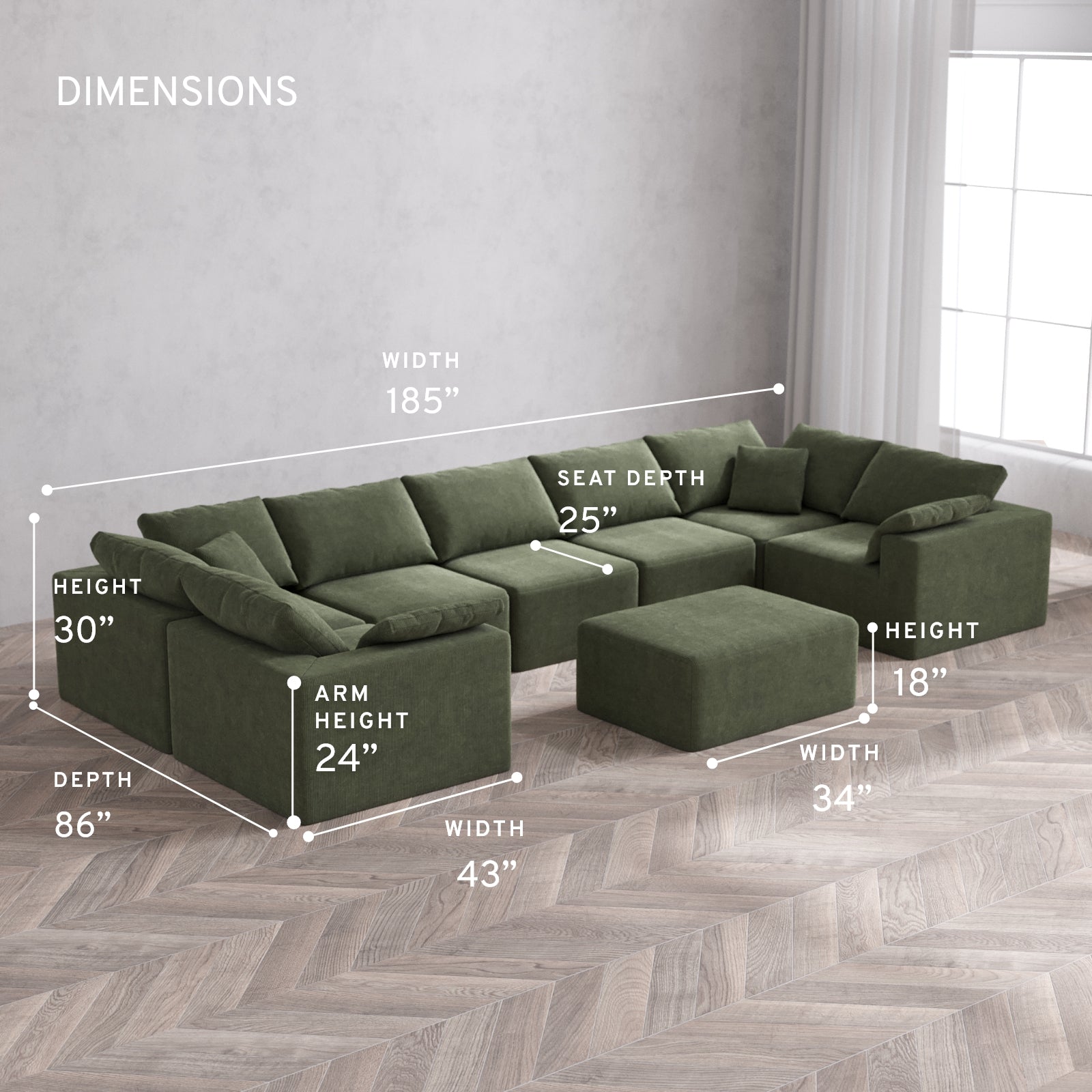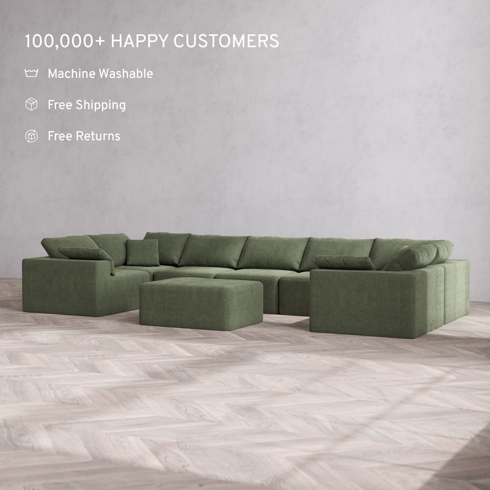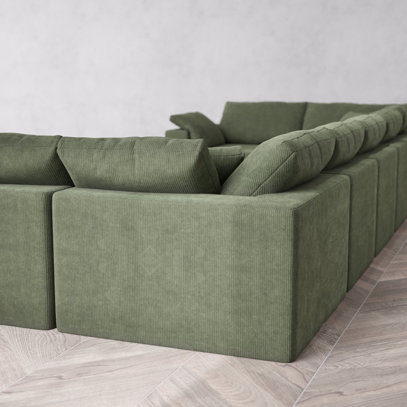 Modular Washable 7-Seater U Sectional + Chaise Ottoman Cloud Sofa | Luxe Corduroy in Juniper