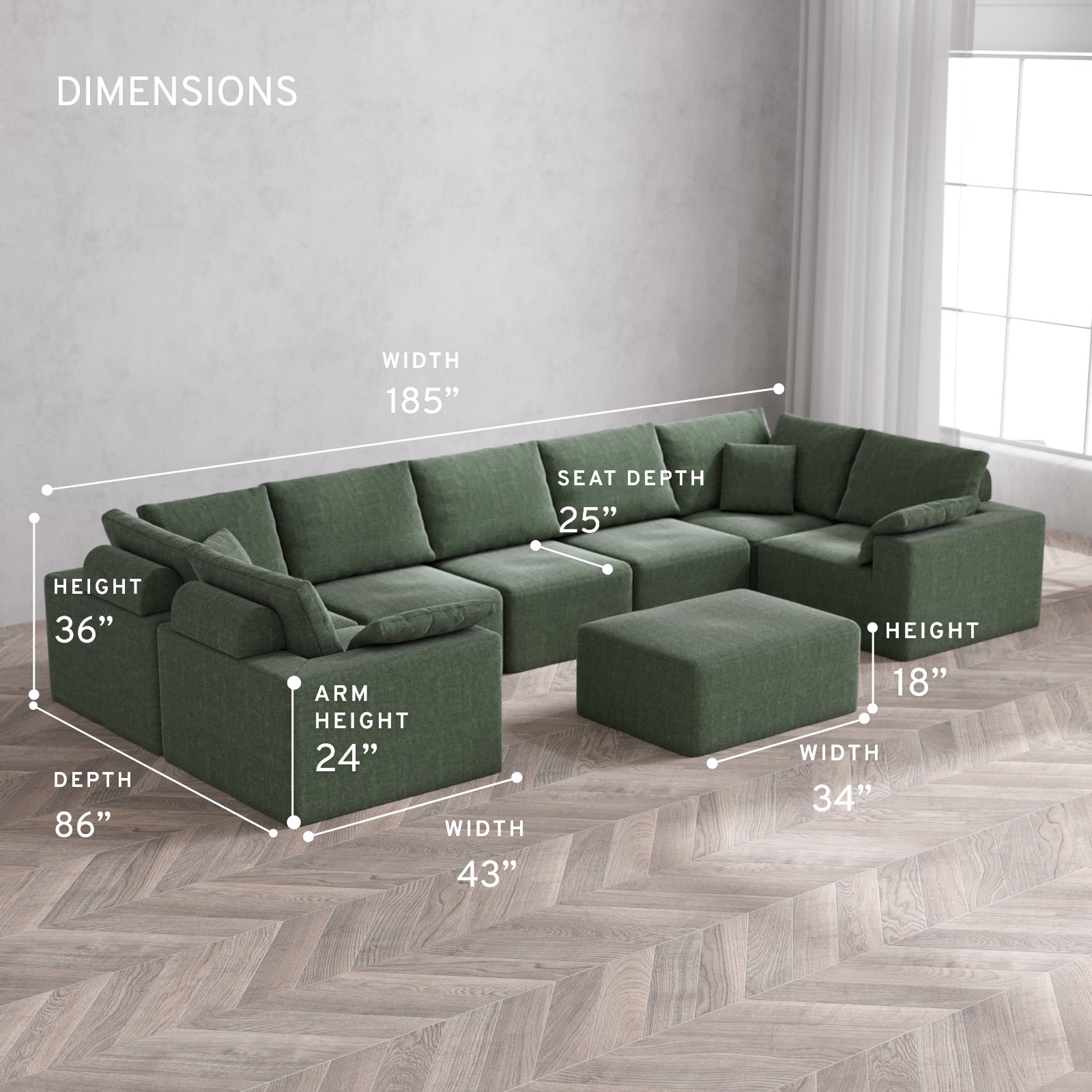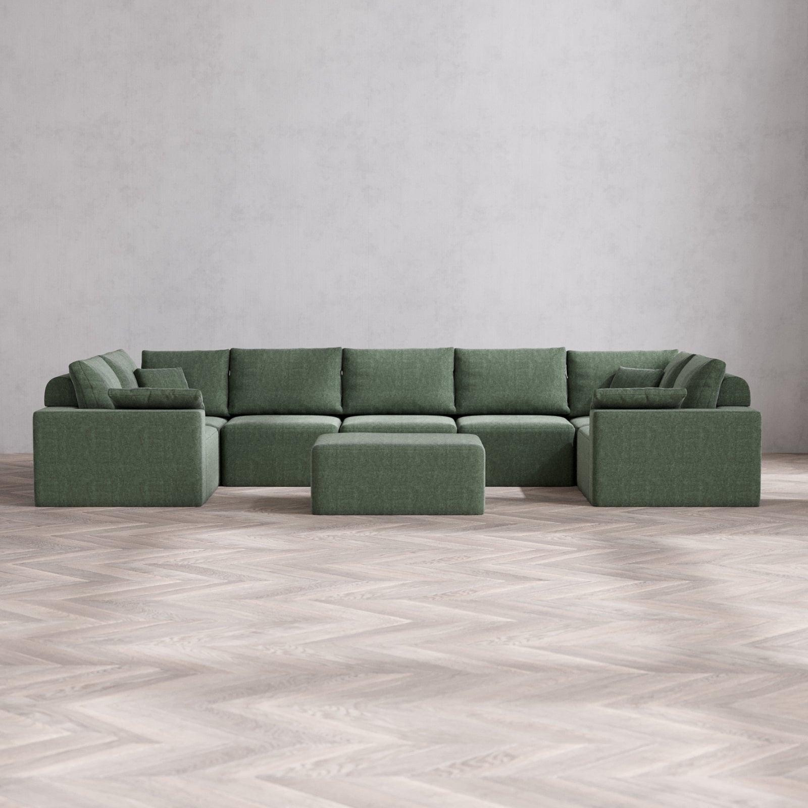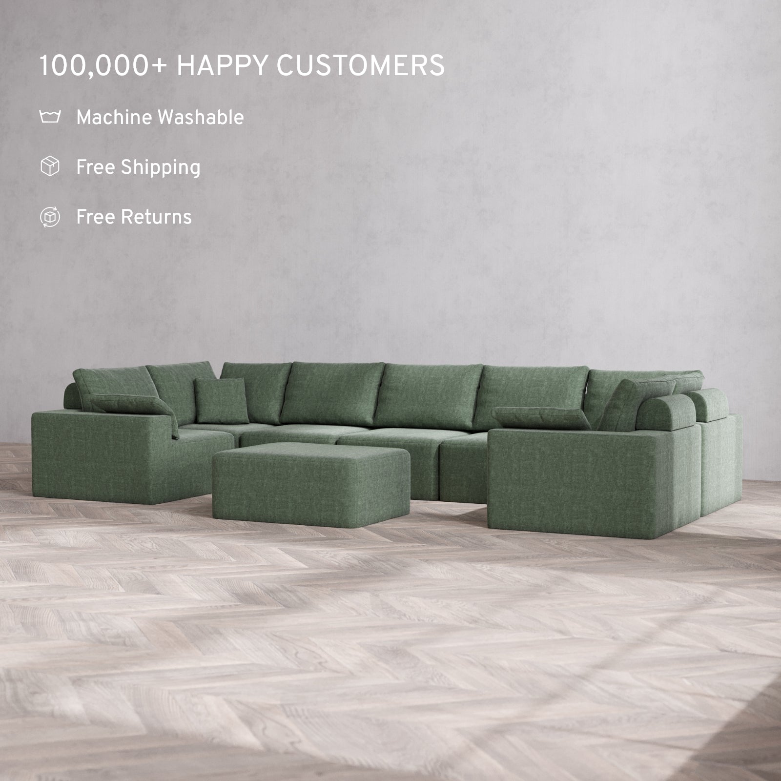 Modular Washable 7-Seater U Sectional + Chaise Ottoman Cloud + Bolster Sofa | Heirloom Velvet in Sage