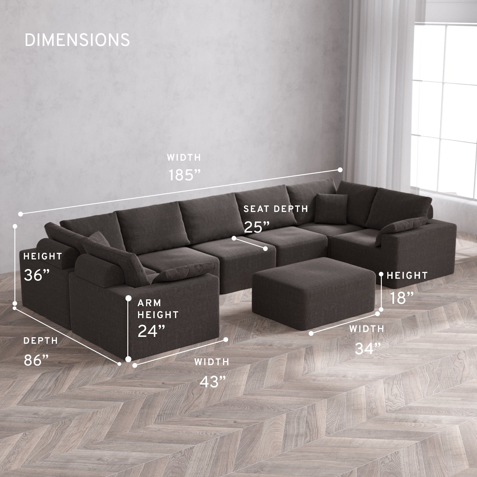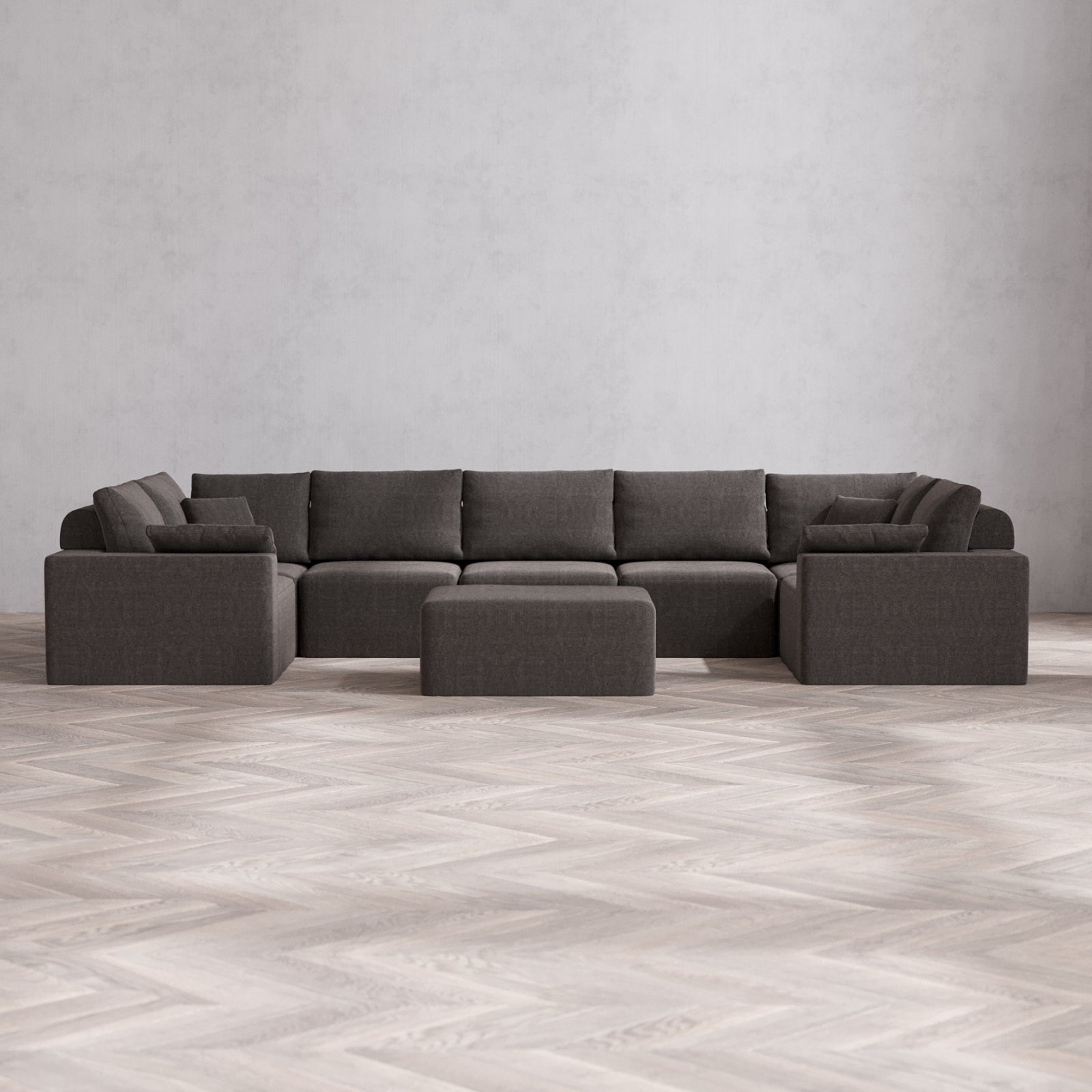 Modular Washable 7-Seater U Sectional + Chaise Ottoman Cloud + Bolster Sofa | Heirloom Velvet in Truffle
