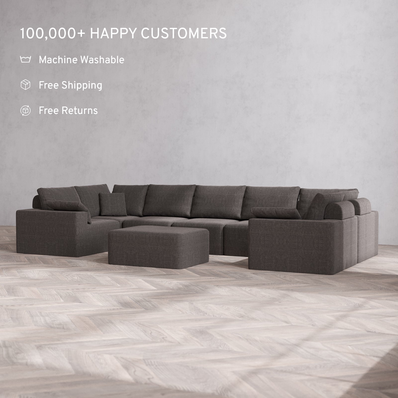 The Only Washable Cloud Sofa: With a waterproof frame and fabrics that resist pets, stains, and spills, this sofa is made to handle everyday messes. Our patent-pending covers are machine washable and fully interchangeable—buy extra sets to change up your look anytime.
