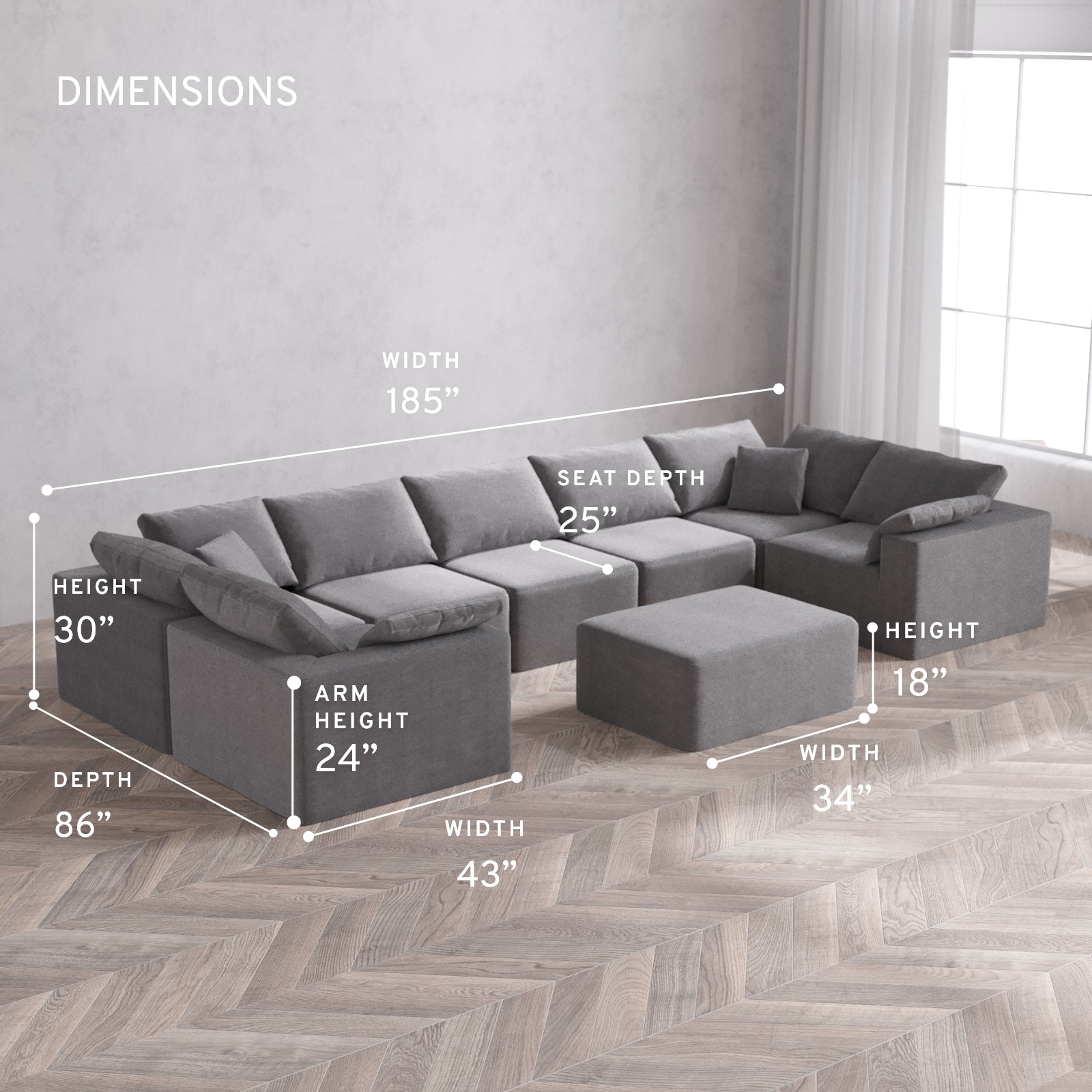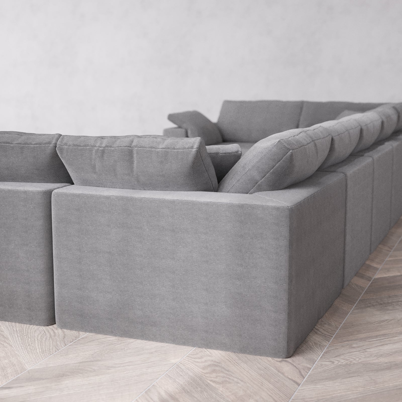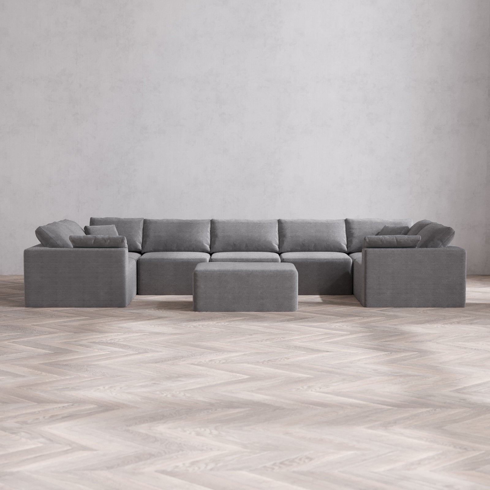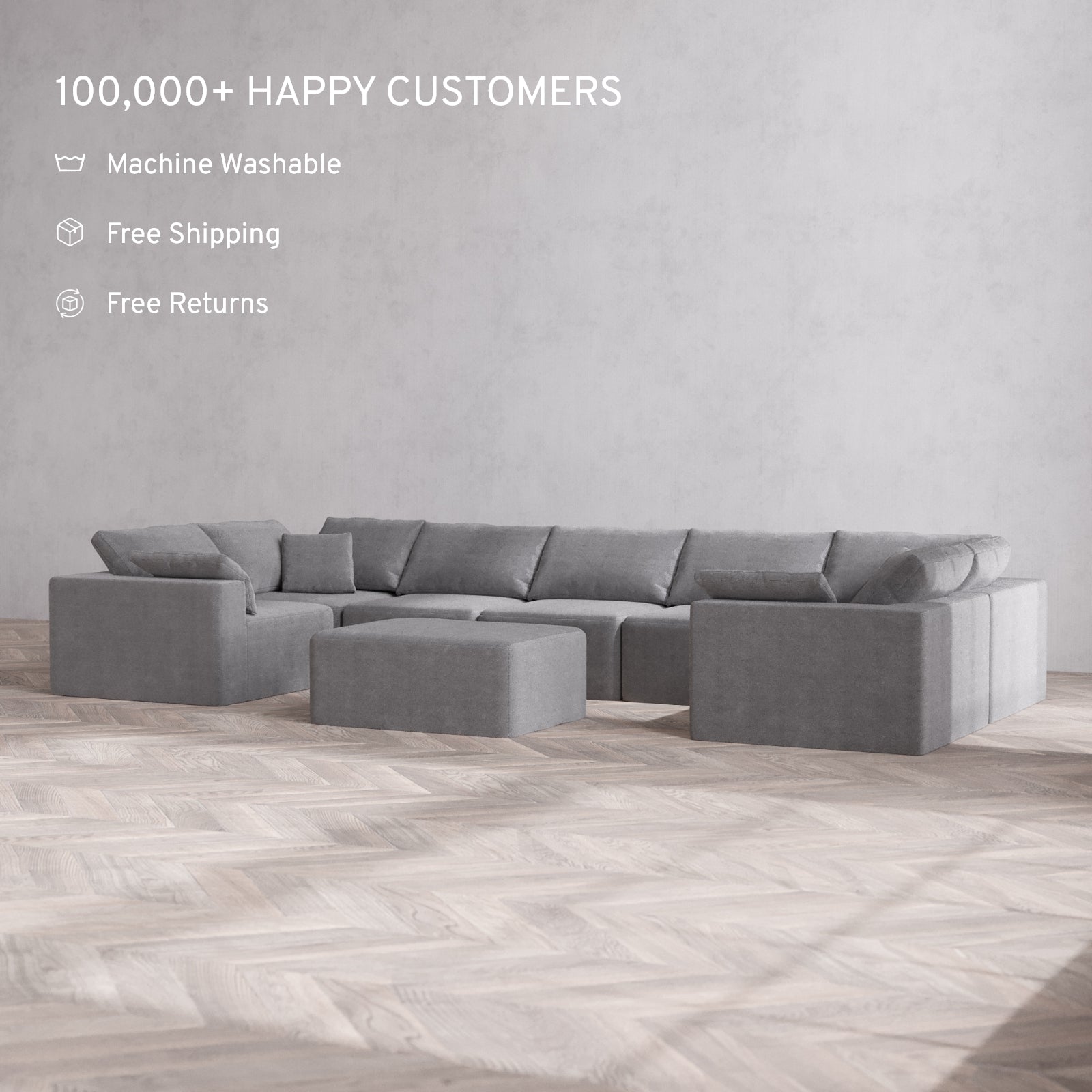 Modular Washable 7-Seater U Sectional + Chaise Ottoman Cloud Sofa | Lux Weave in Slate