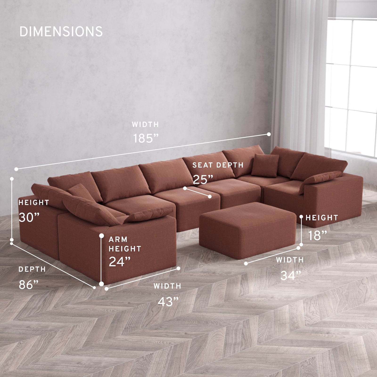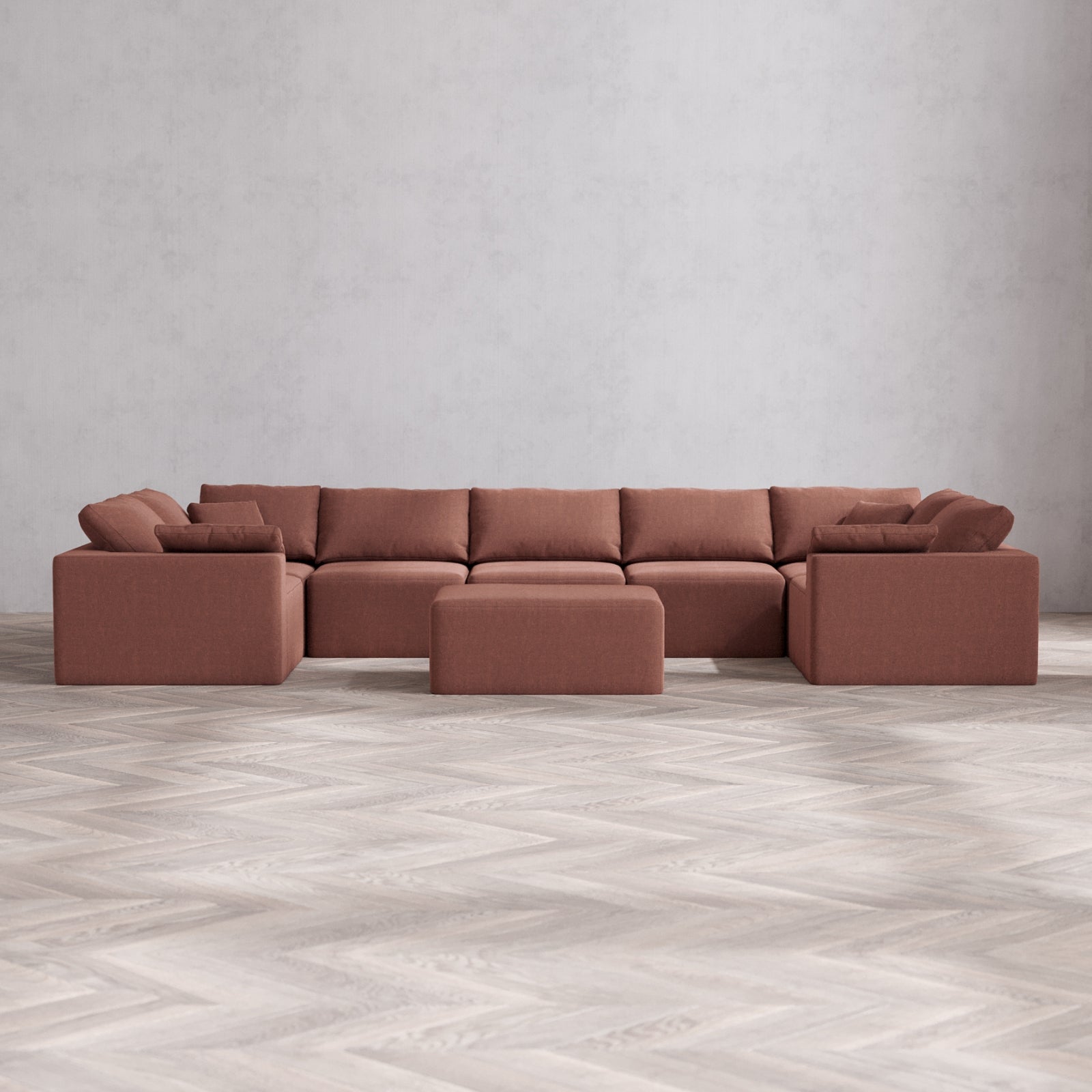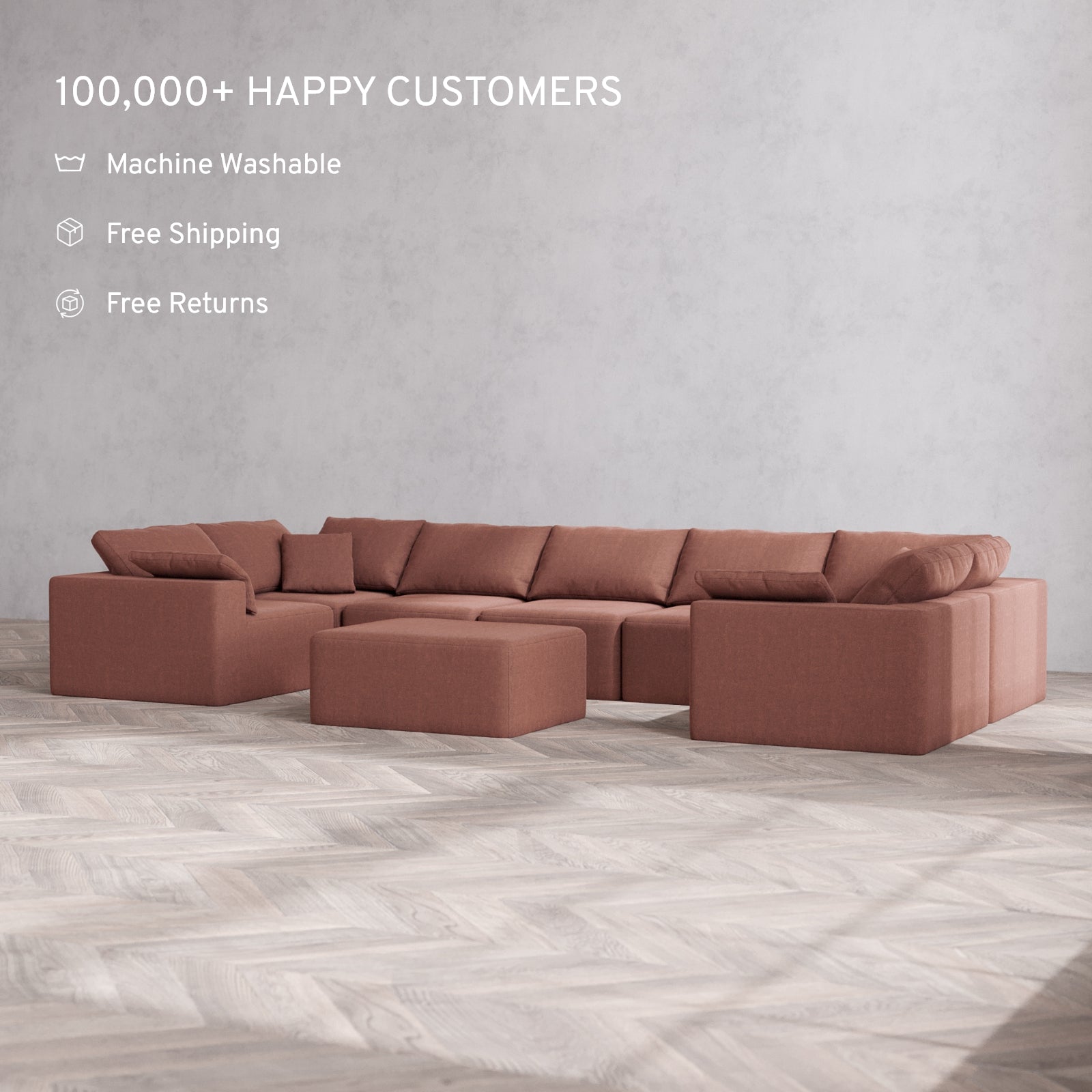 Modular Washable 7-Seater U Sectional + Chaise Ottoman Cloud Sofa | Heirloom Velvet in Sumac