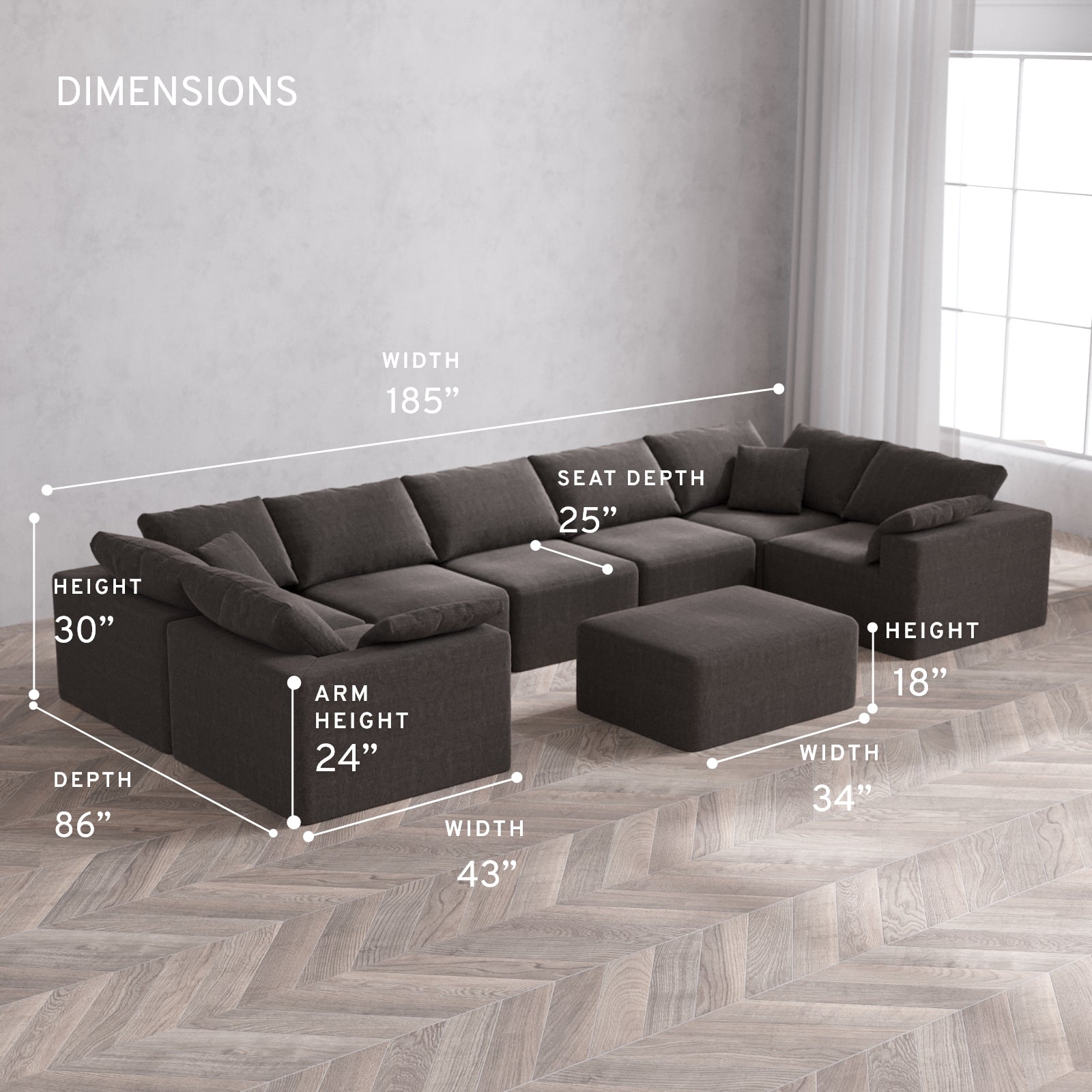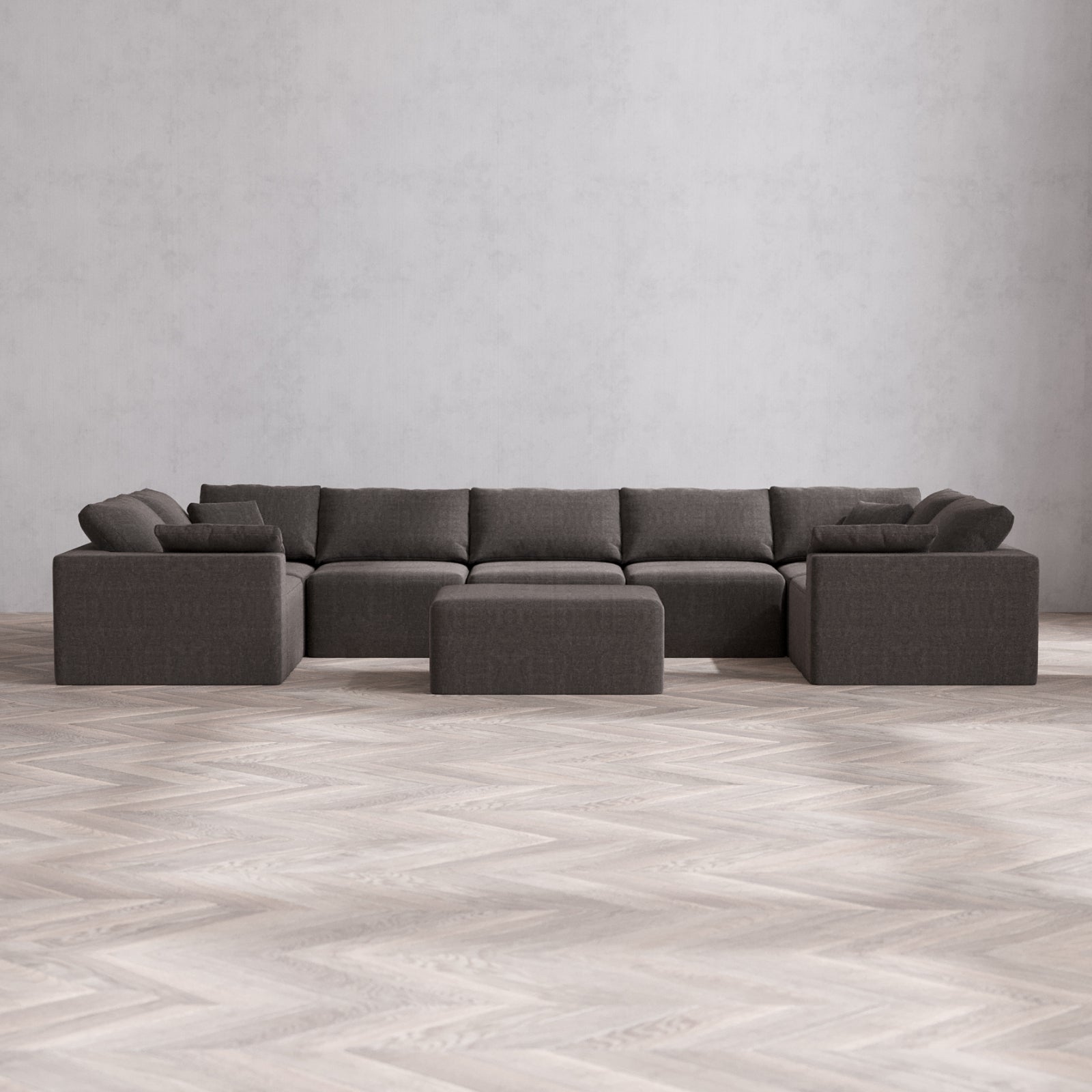 Modular Washable 7-Seater U Sectional + Chaise Ottoman Cloud Sofa | Heirloom Velvet in Truffle