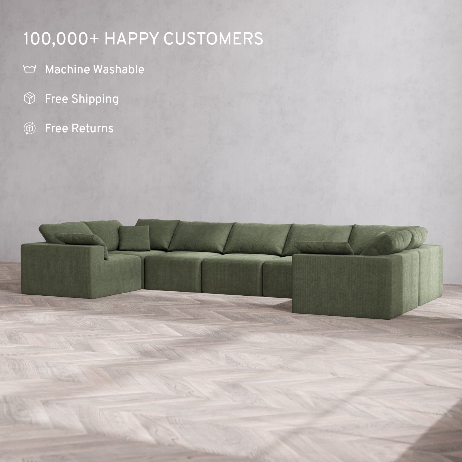 Modular Washable 7-Seater U Sectional Cloud Sofa | Luxe Corduroy in Juniper