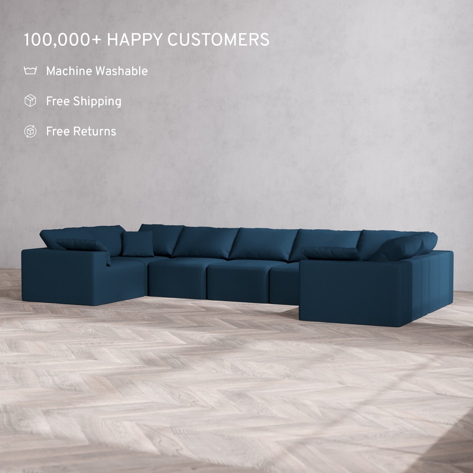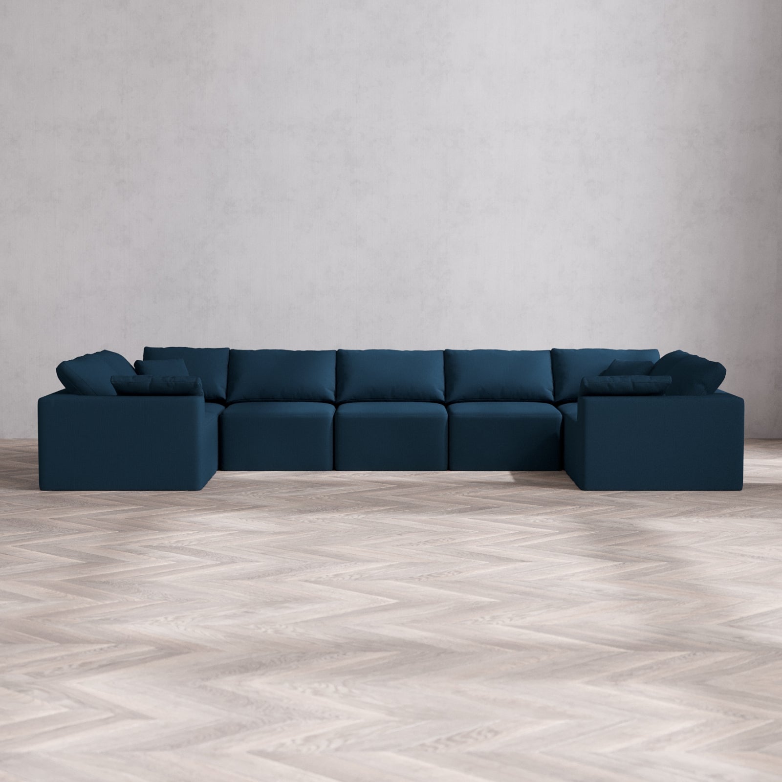 Modular Washable 7-Seater U Sectional Cloud Sofa | Arden Weave in Lazuli