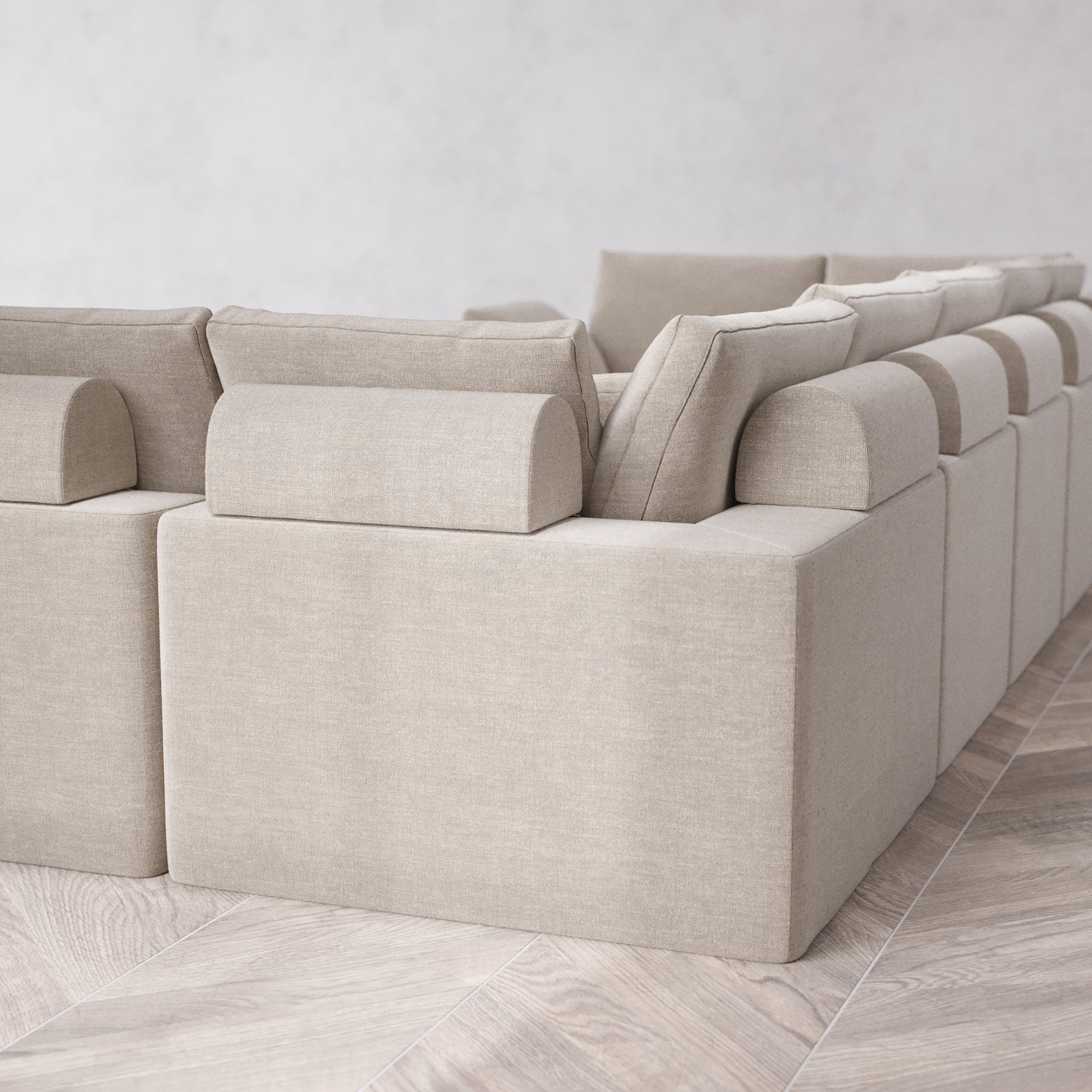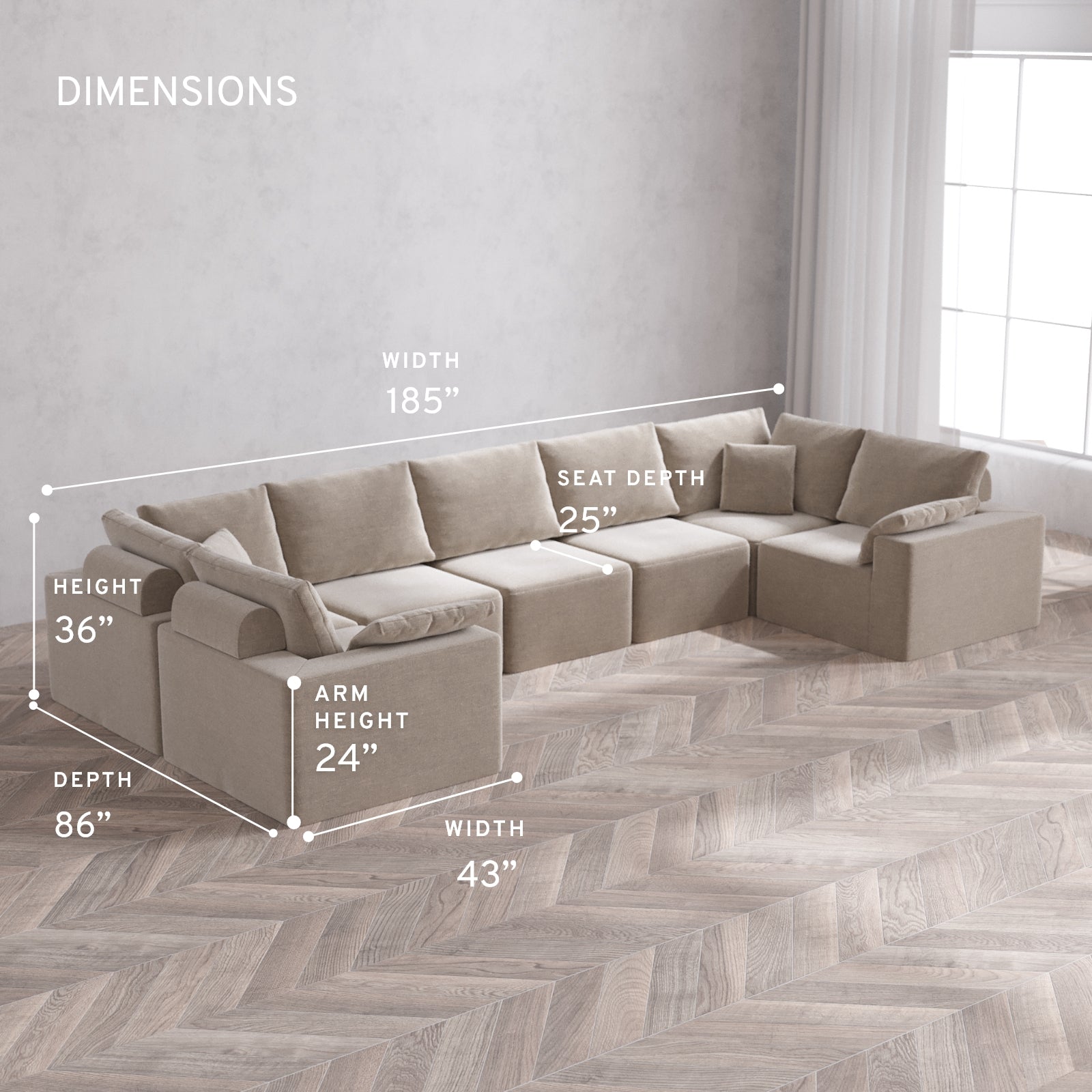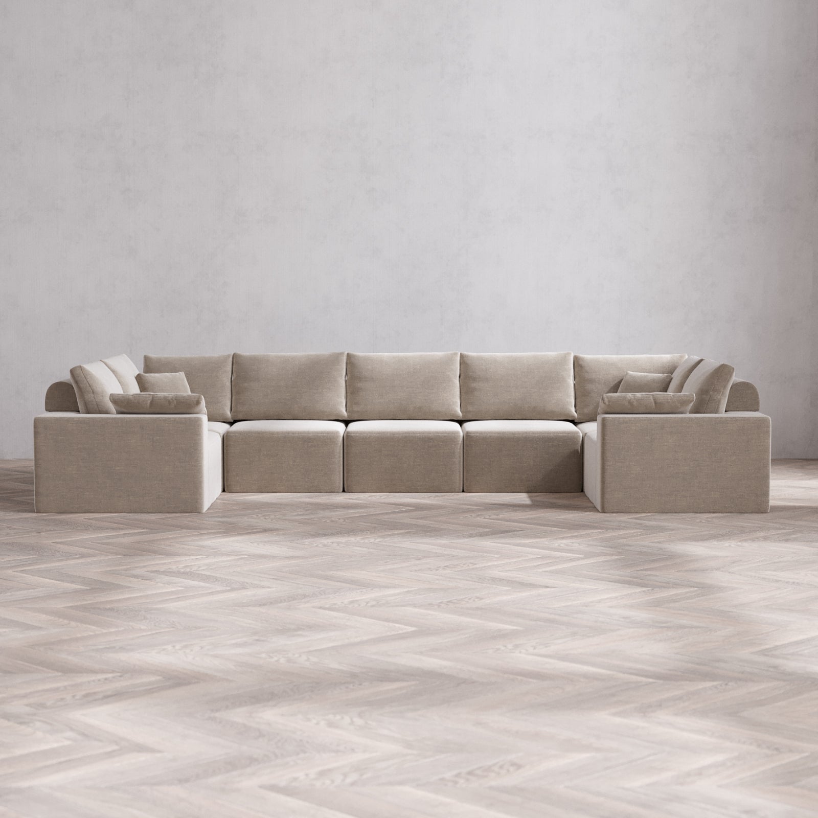 Modular Washable 7-Seater U Sectional Cloud + Bolster Sofa | Satin Velvet in Caraway