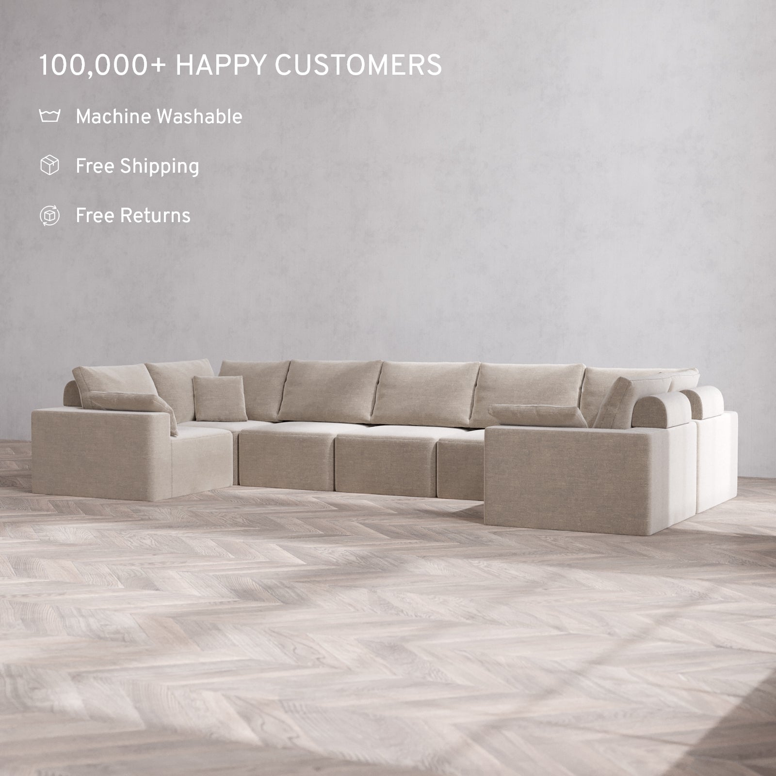 The Only Washable Cloud Sofa: With a waterproof frame and fabrics that resist pets, stains, and spills, this sofa is made to handle everyday messes. Our patent-pending covers are machine washable and fully interchangeable—buy extra sets to change up your look anytime.