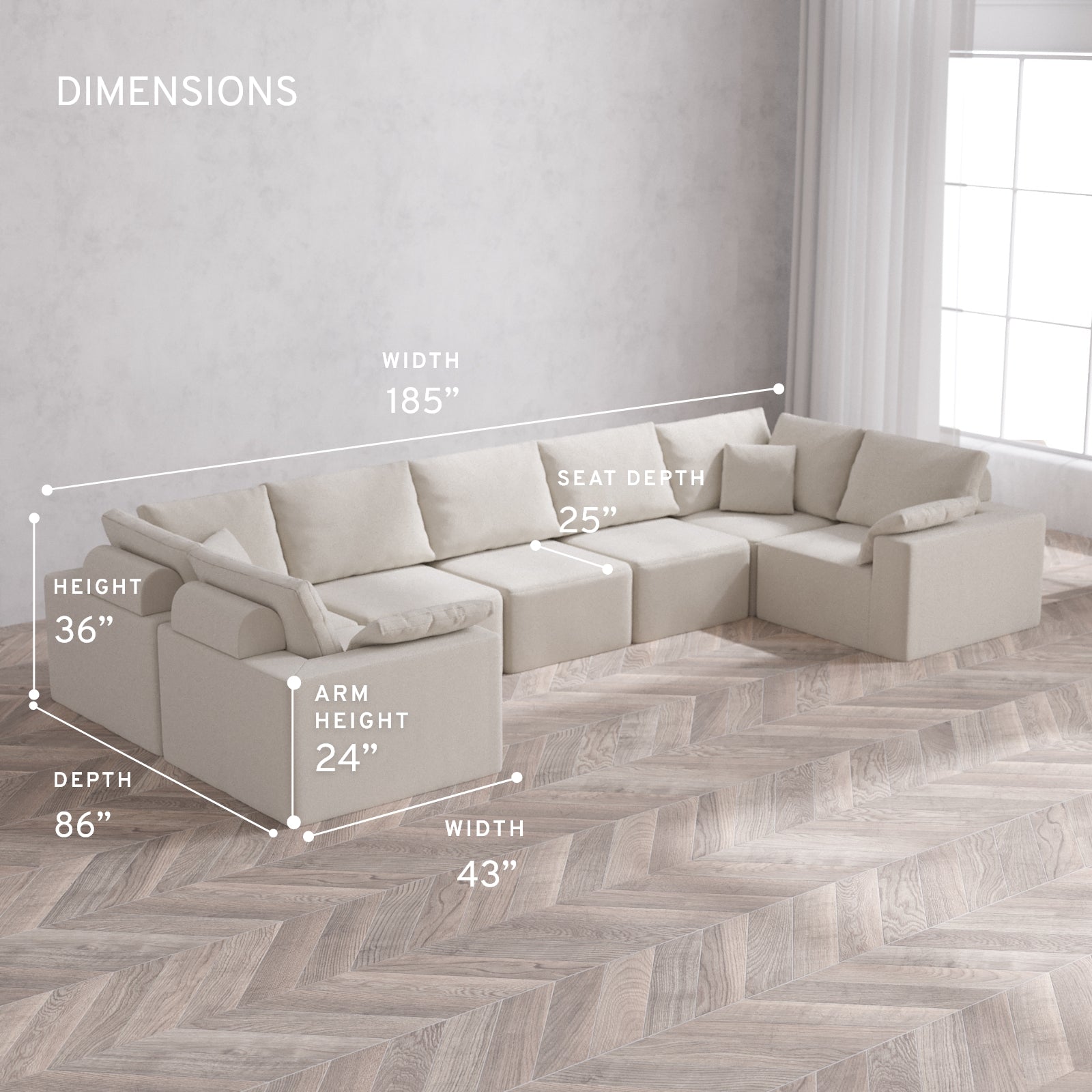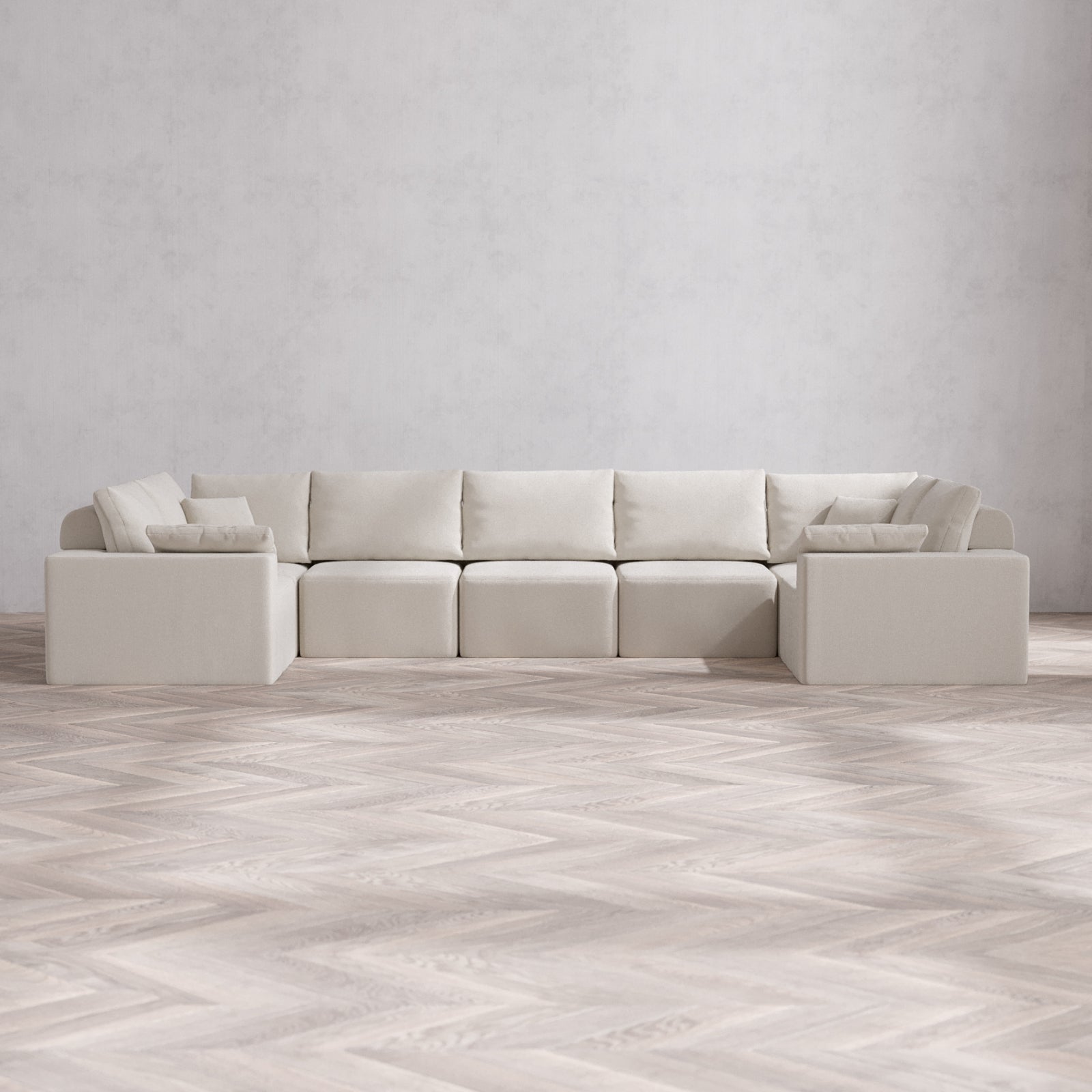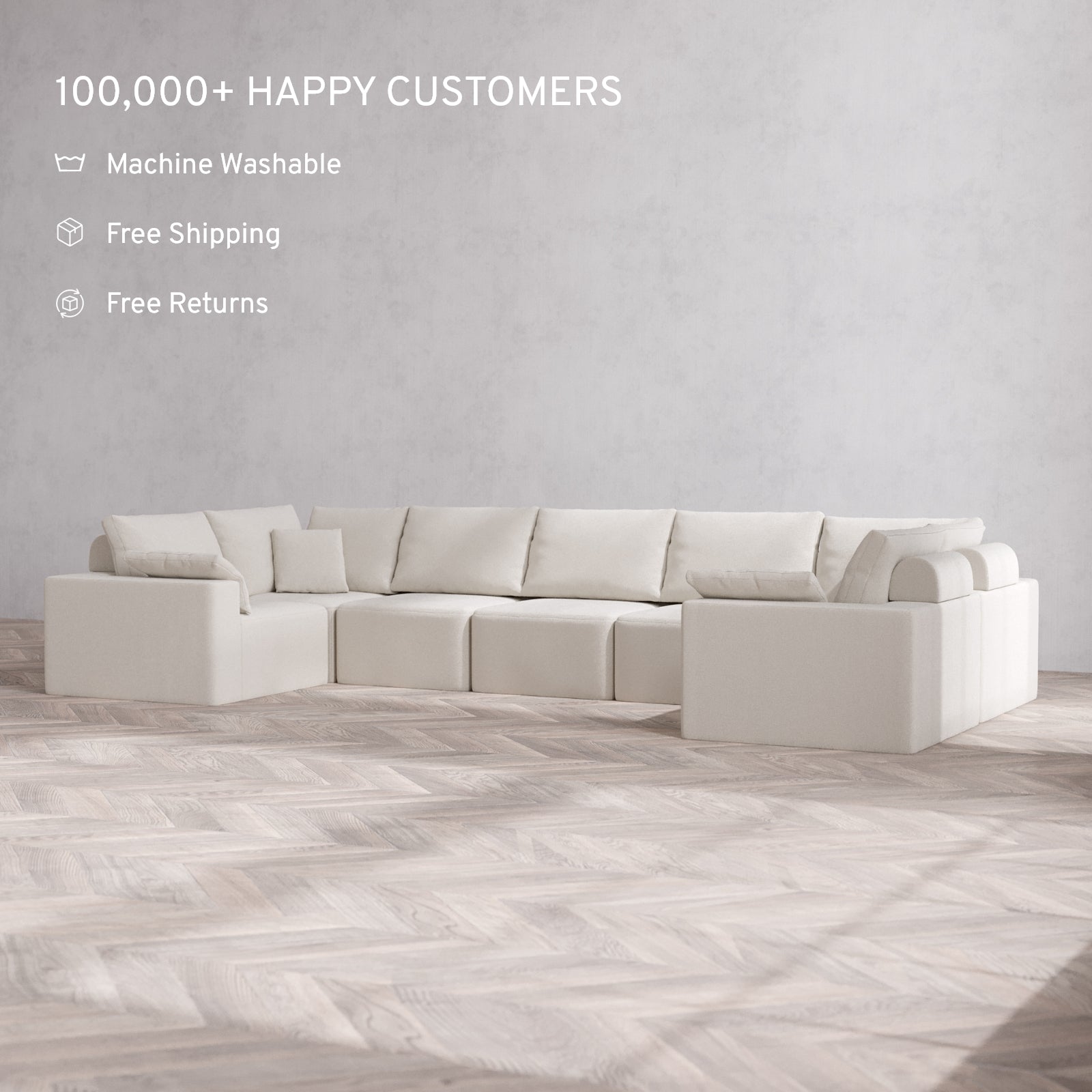 Modular Washable 7-Seater U Sectional Cloud + Bolster Sofa | Lux Weave in Pearl