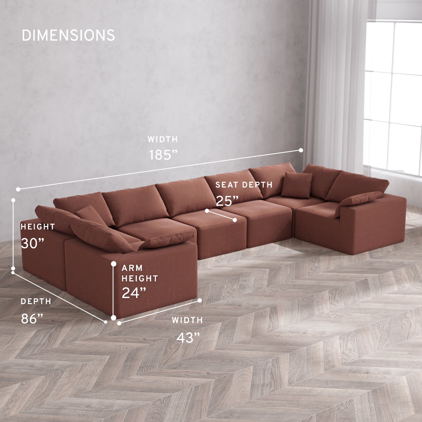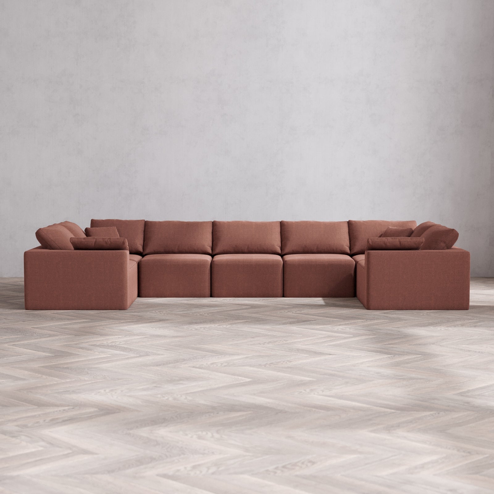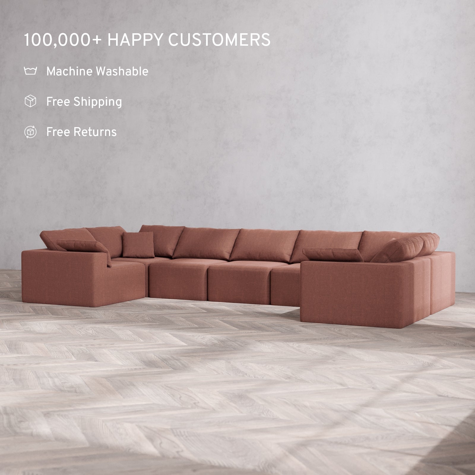 Modular Washable 7-Seater U Sectional Cloud Sofa | Heirloom Velvet in Sumac