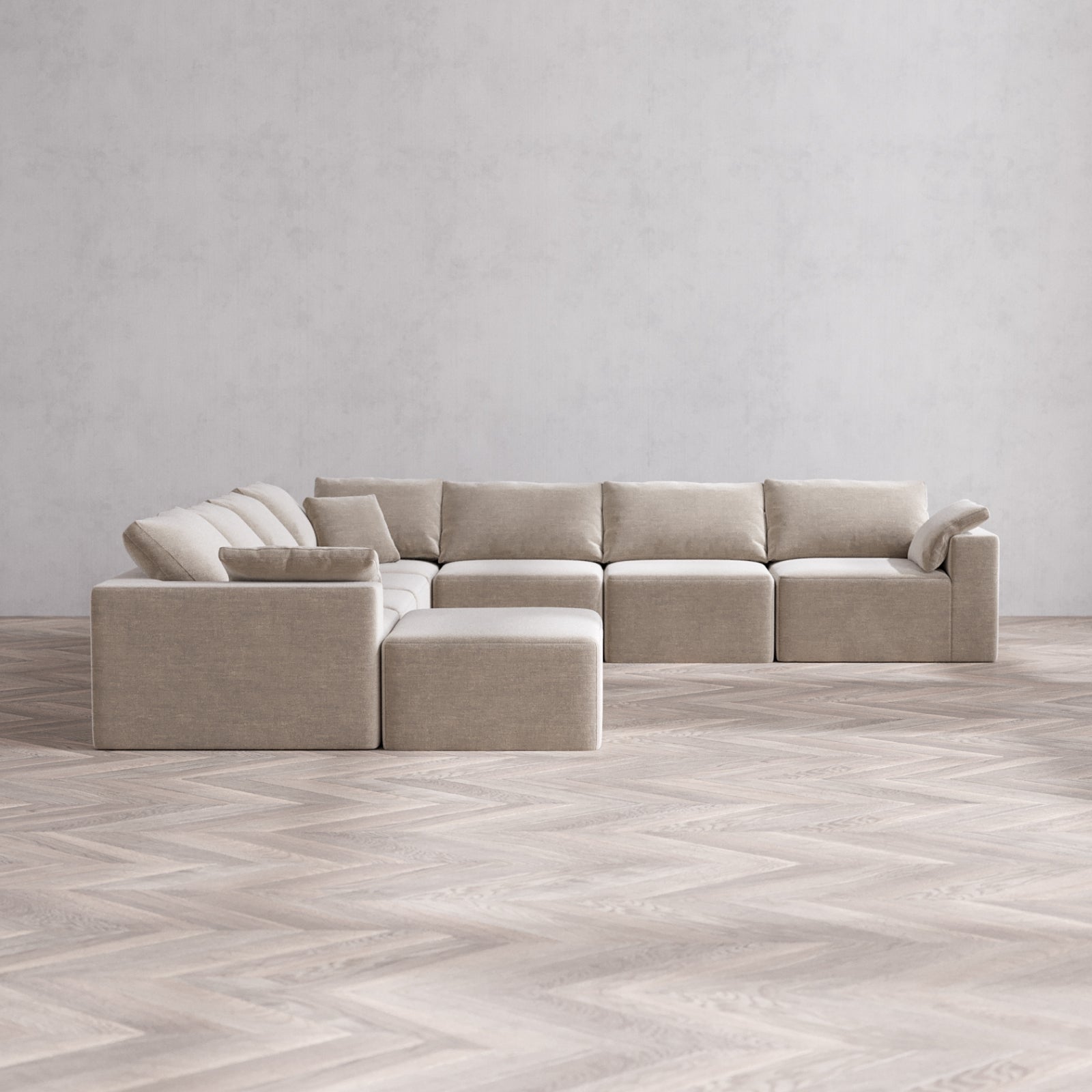 Modular Washable 8-Seater Corner Chaise Sectional Cloud Sofa | Satin Velvet in Caraway
