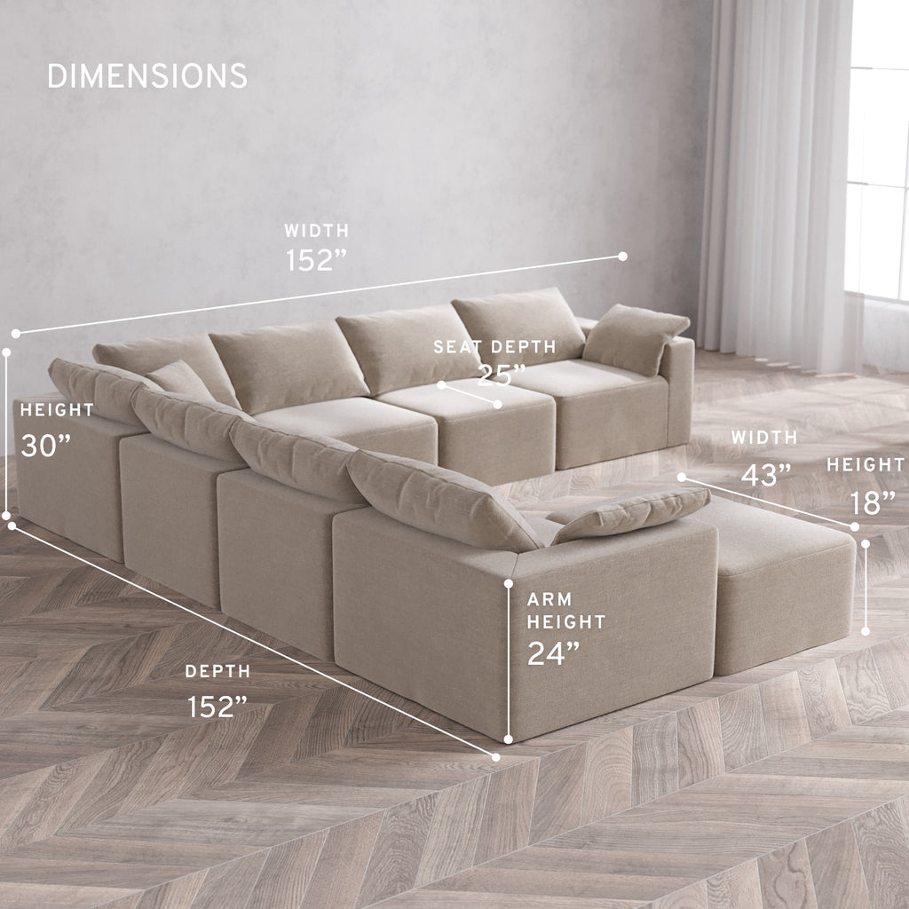 Machine Washable: Every piece of fabric—including the internal quilted duvet—is fully removable and machine washable. It’s the only Cloud-style sofa you can truly deep clean, effortlessly.