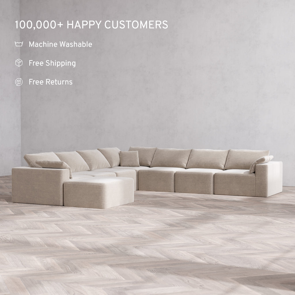 The Only Washable Cloud Sofa: With a waterproof frame and fabrics that resist pets, stains, and spills, this sofa is made to handle everyday messes. Our patent-pending covers are machine washable and fully interchangeable—buy extra sets to change up your look anytime.