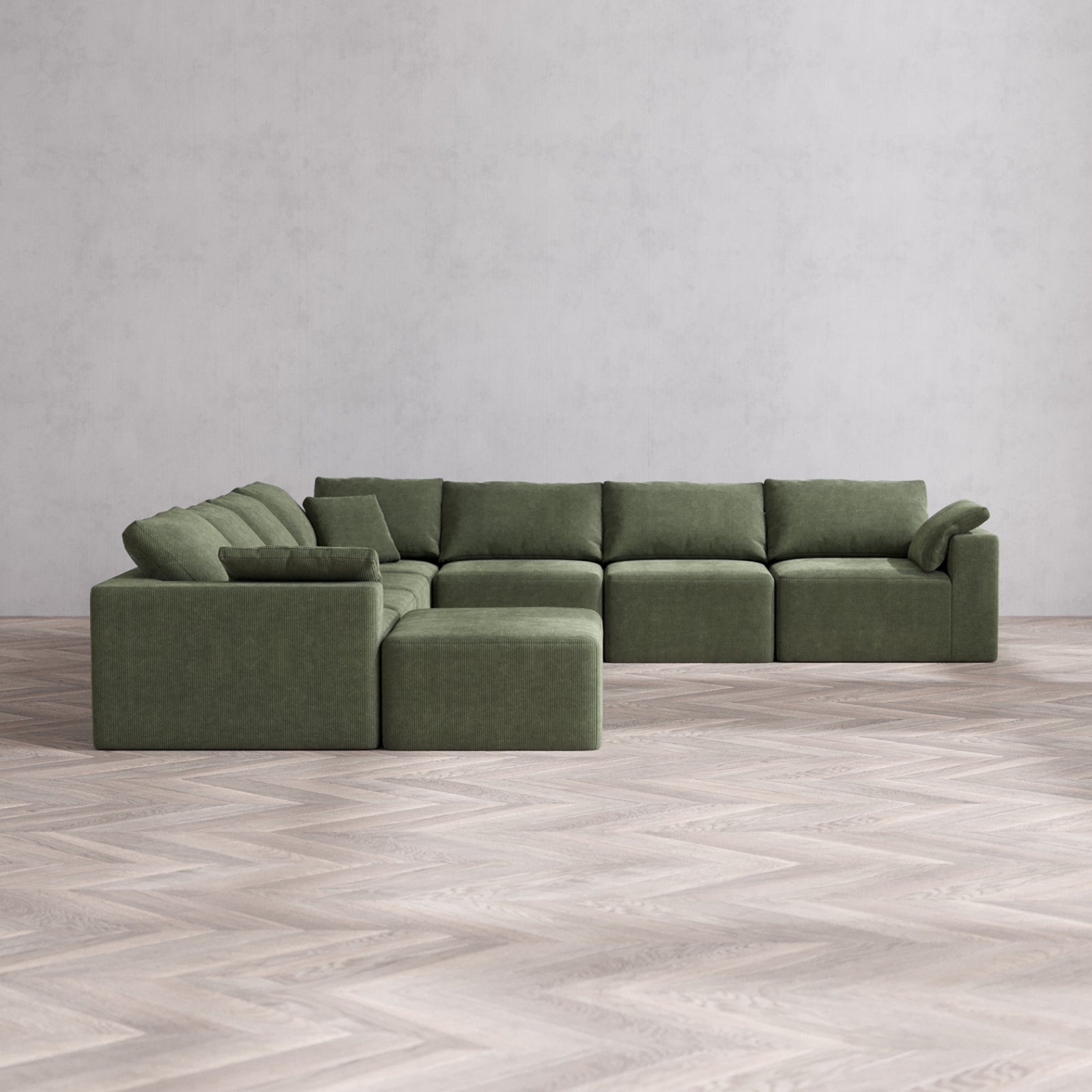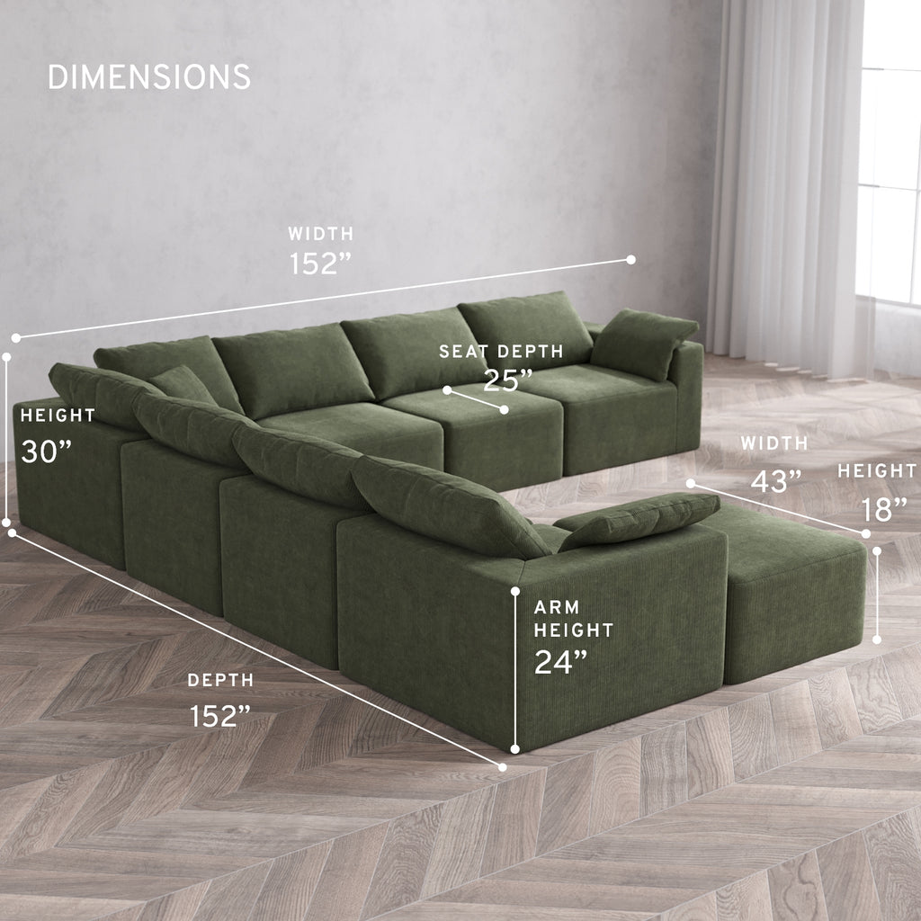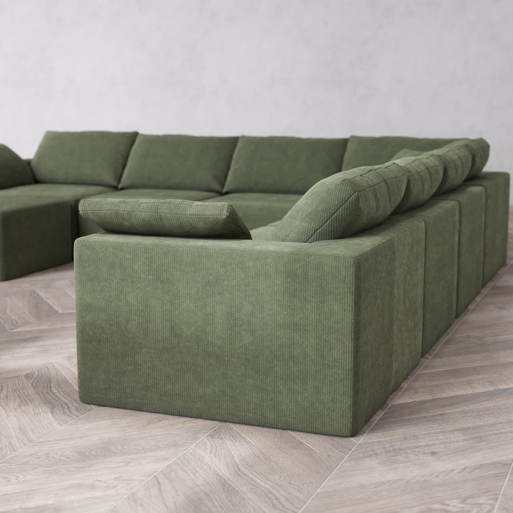 Modular Washable 8-Seater Corner Chaise Sectional Cloud Sofa | Luxe Corduroy in Juniper