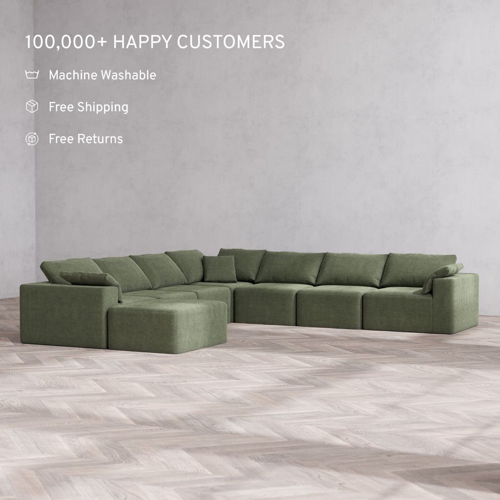 Machine Washable: Every piece of fabric—including the internal quilted duvet—is fully removable and machine washable. It’s the only Cloud-style sofa you can truly deep clean, effortlessly.