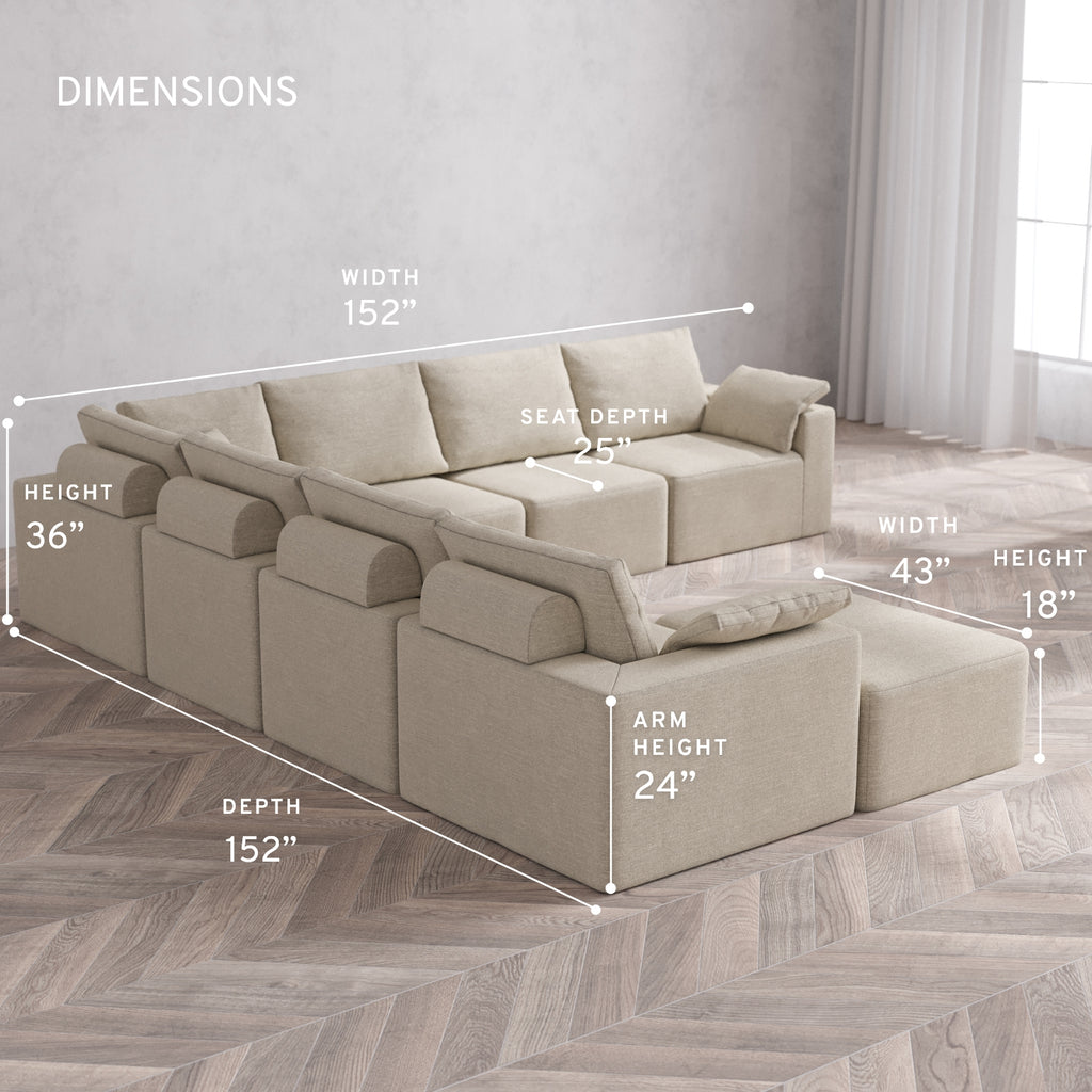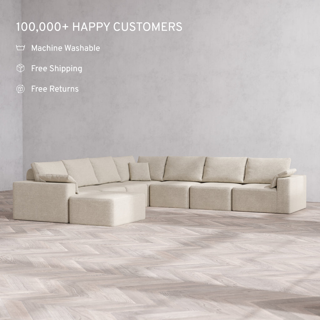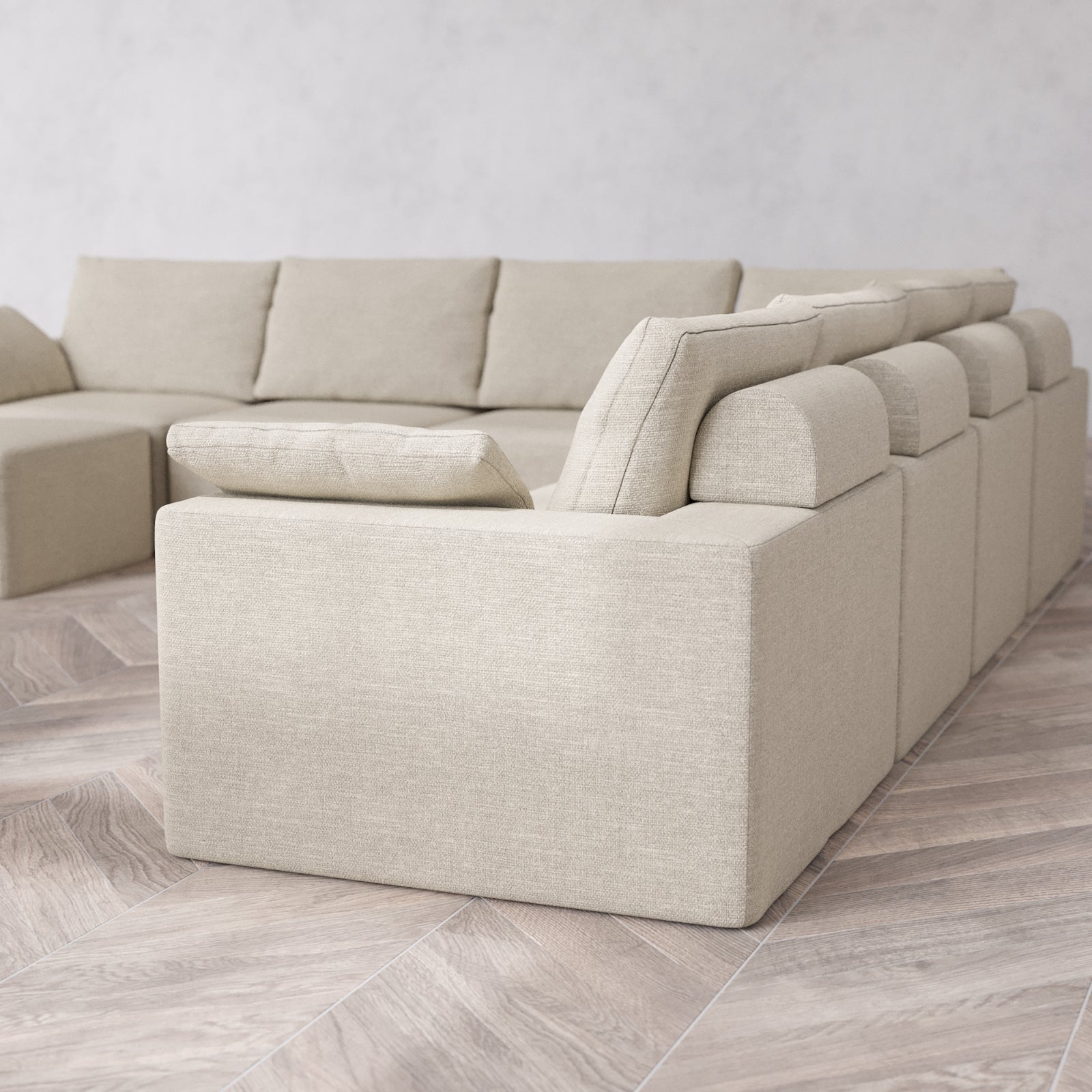 Modular Washable 8-Seater Corner Chaise Sectional Cloud + Bolster Sofa | Plush Twill in Sandstone
