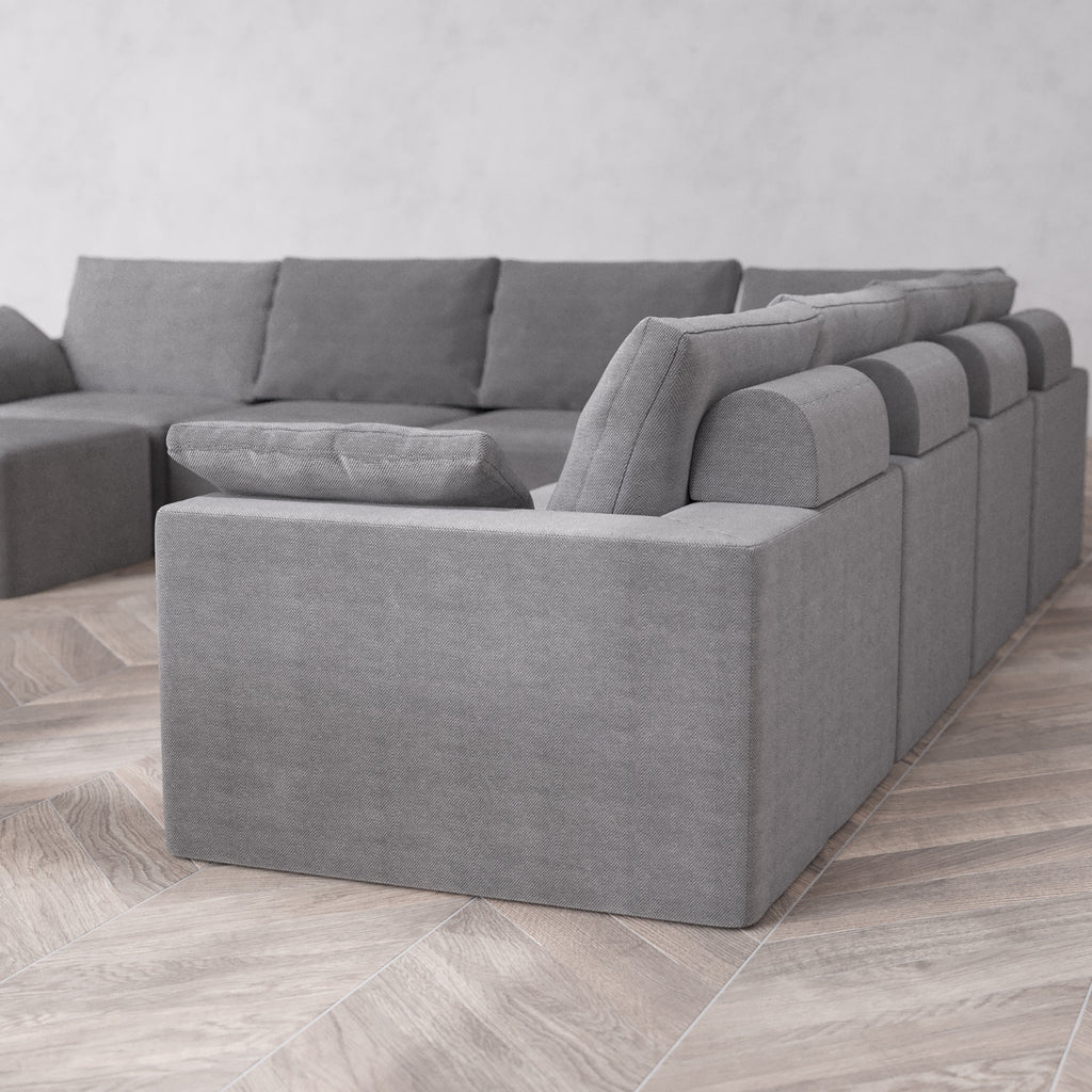 Modular Washable 8-Seater Corner Chaise Sectional Cloud + Bolster Sofa | Lux Weave in Slate