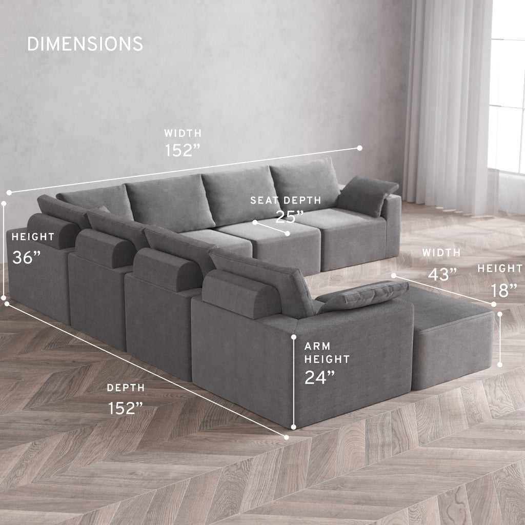 Machine Washable: Every piece of fabric—including the internal quilted duvet—is fully removable and machine washable. It’s the only Cloud-style sofa you can truly deep clean, effortlessly.